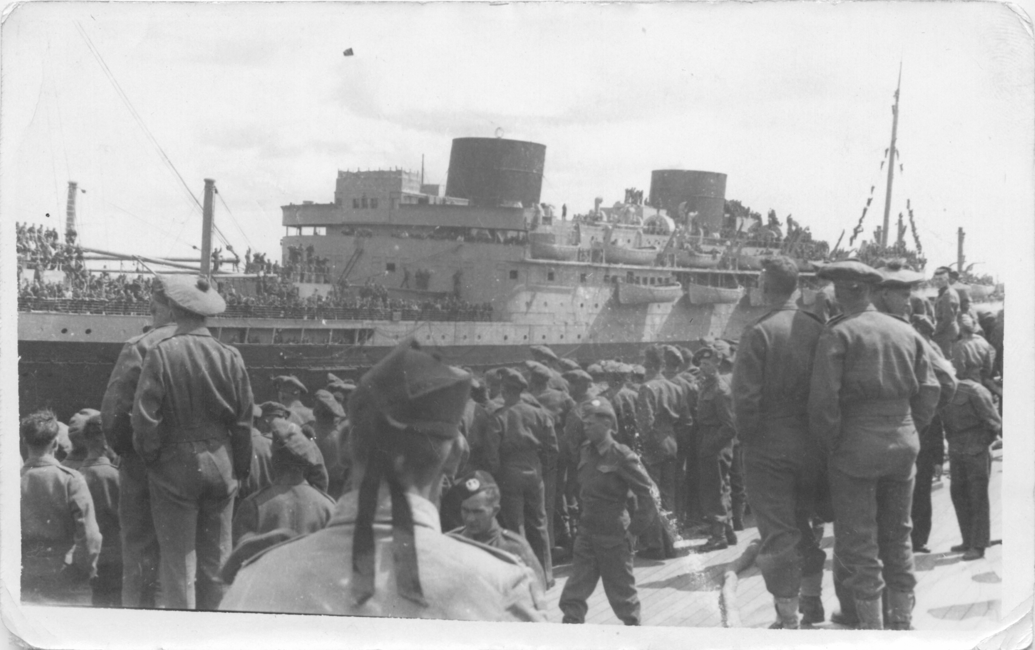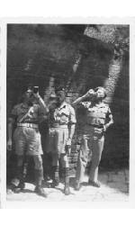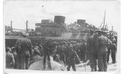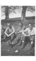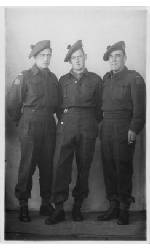 Description Embarkation Leone Mar 11 1941, Do you remember the day this was taken, Geo. Hope you are enjoying live 100%. Love Jean L-R Joe, Bill George and Donnie Macdonald