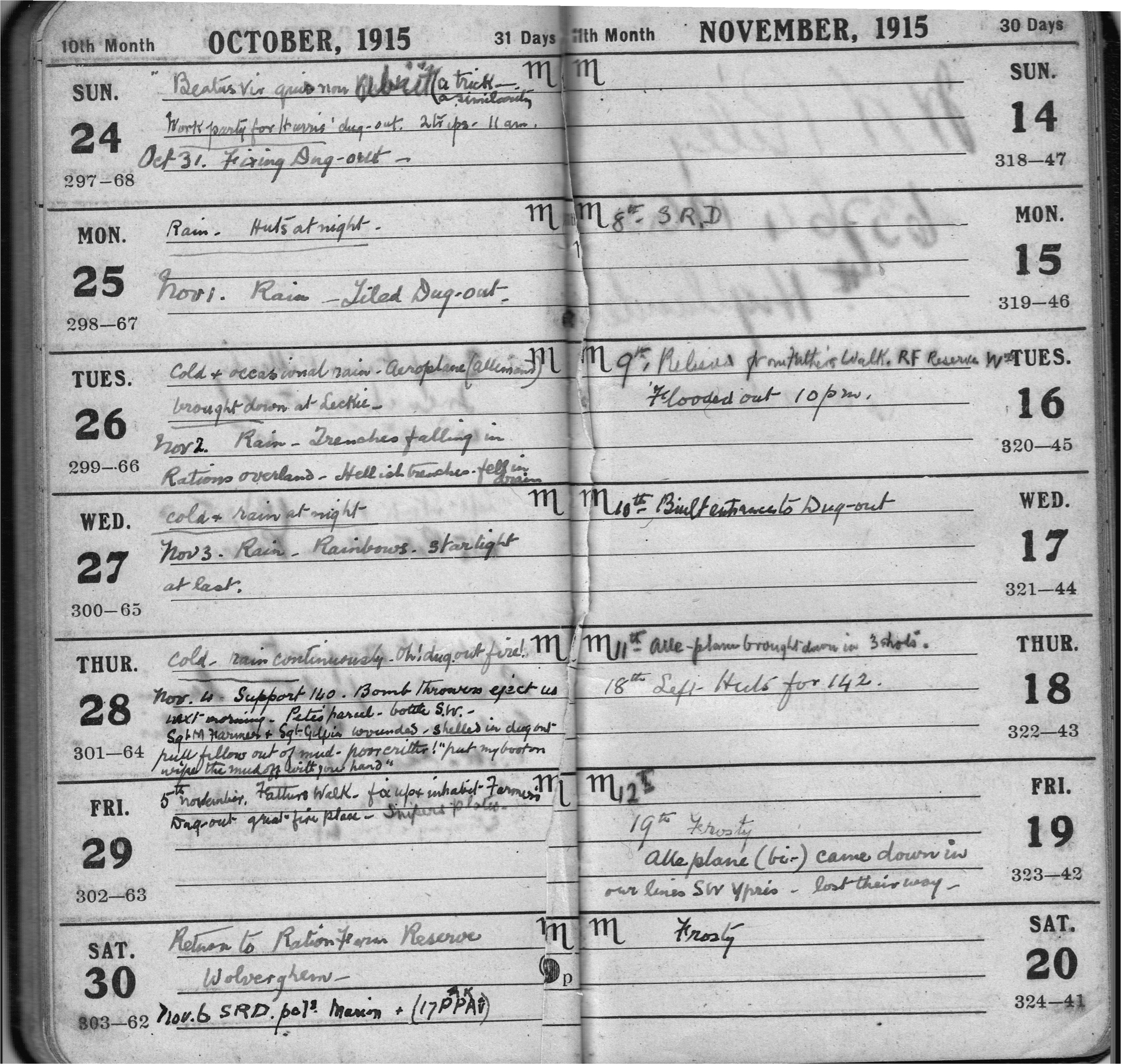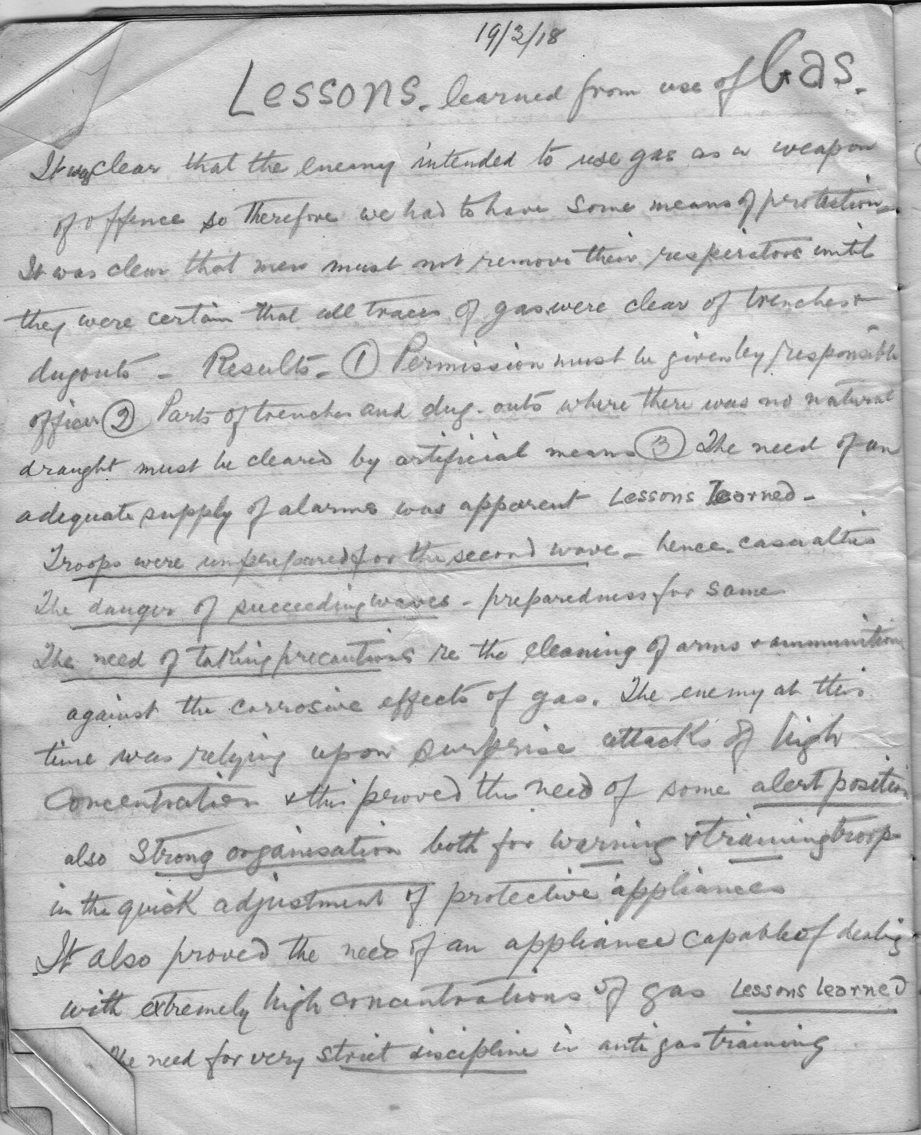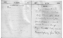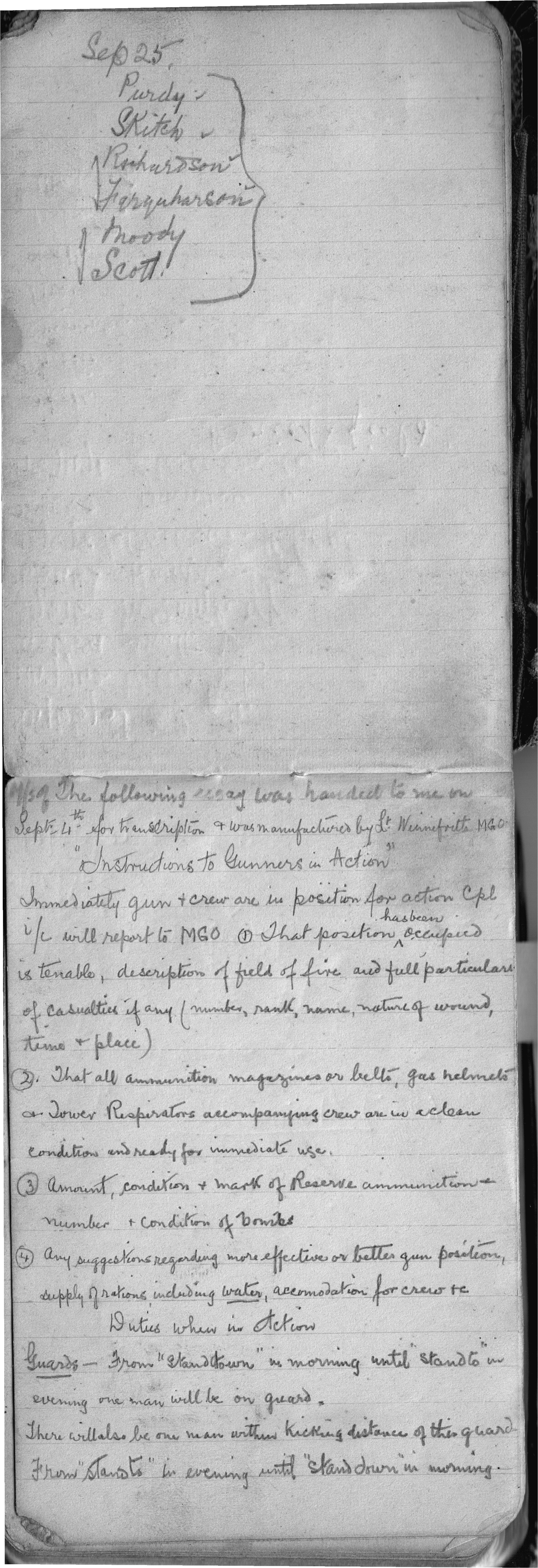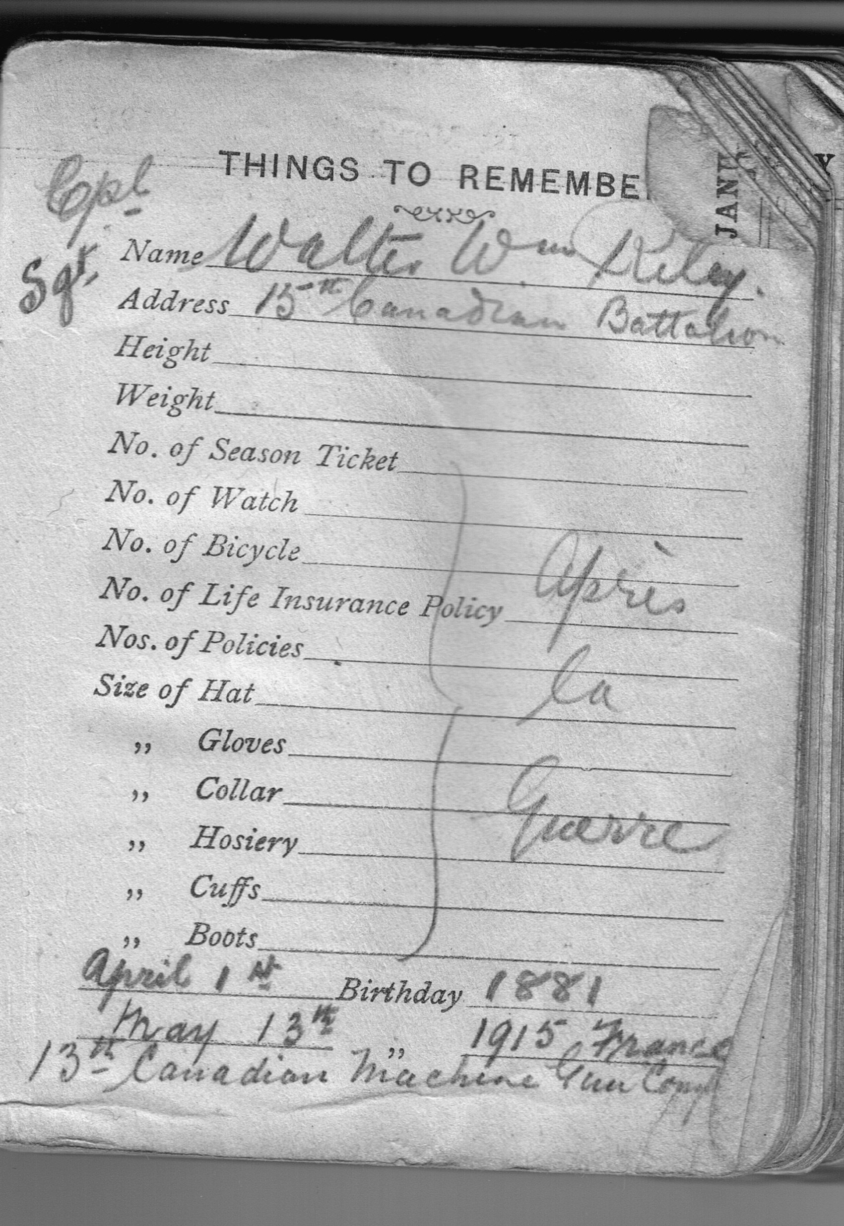 Object Desc Selection of Riley Walter W. diary pages and writings pertaining to WW1. Service # 63764 Sergeant. Originals borrowed from Allan Riley and returned.