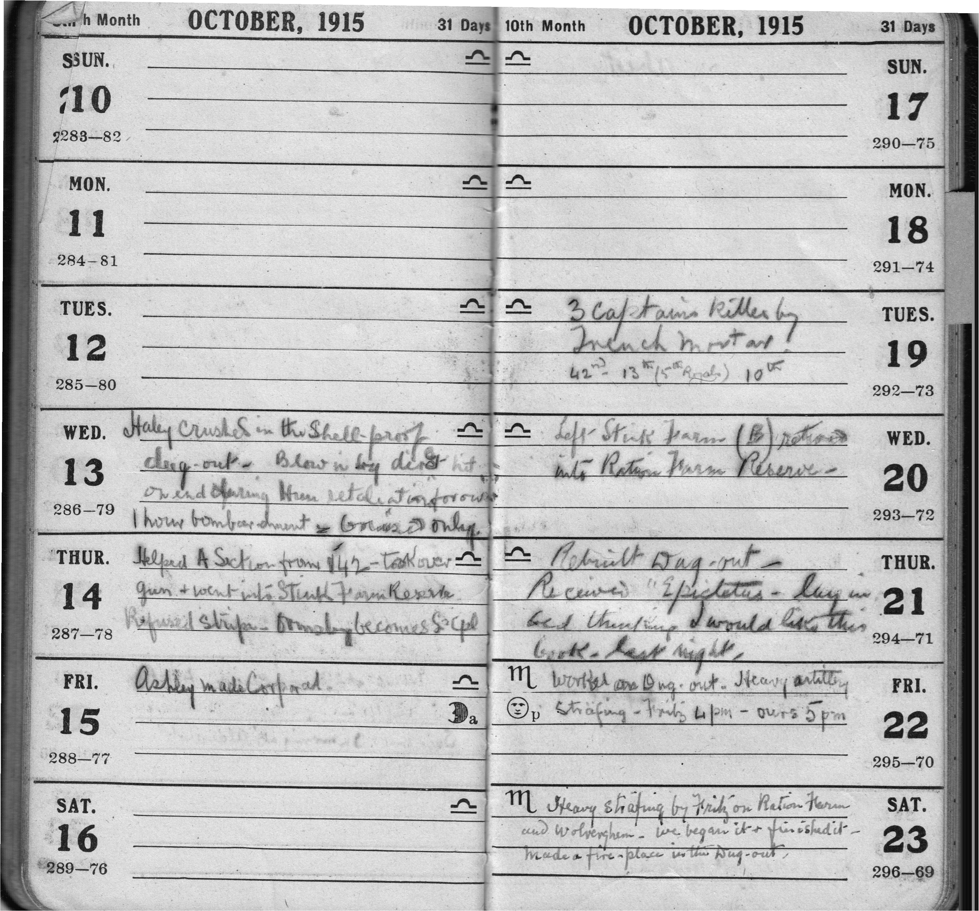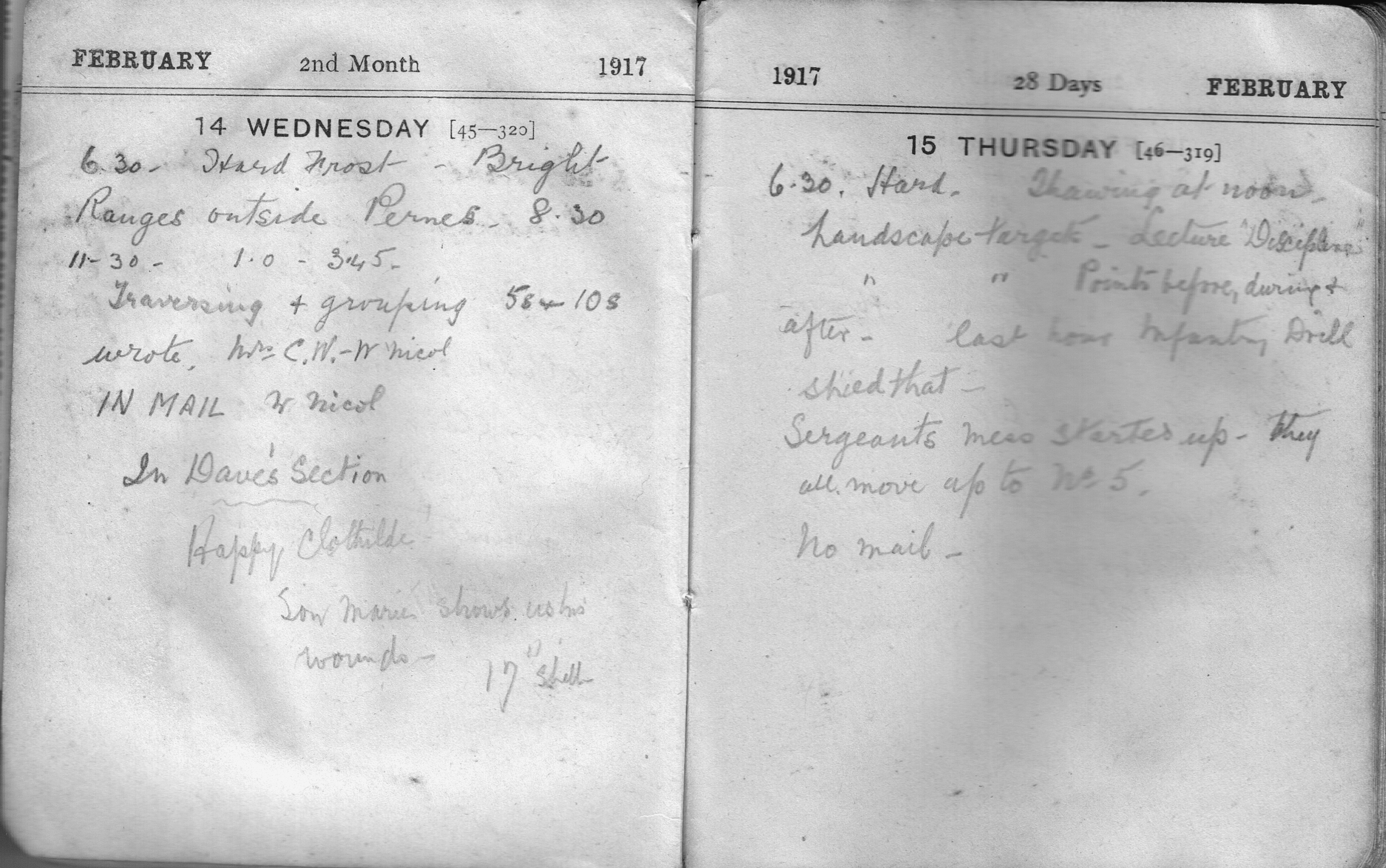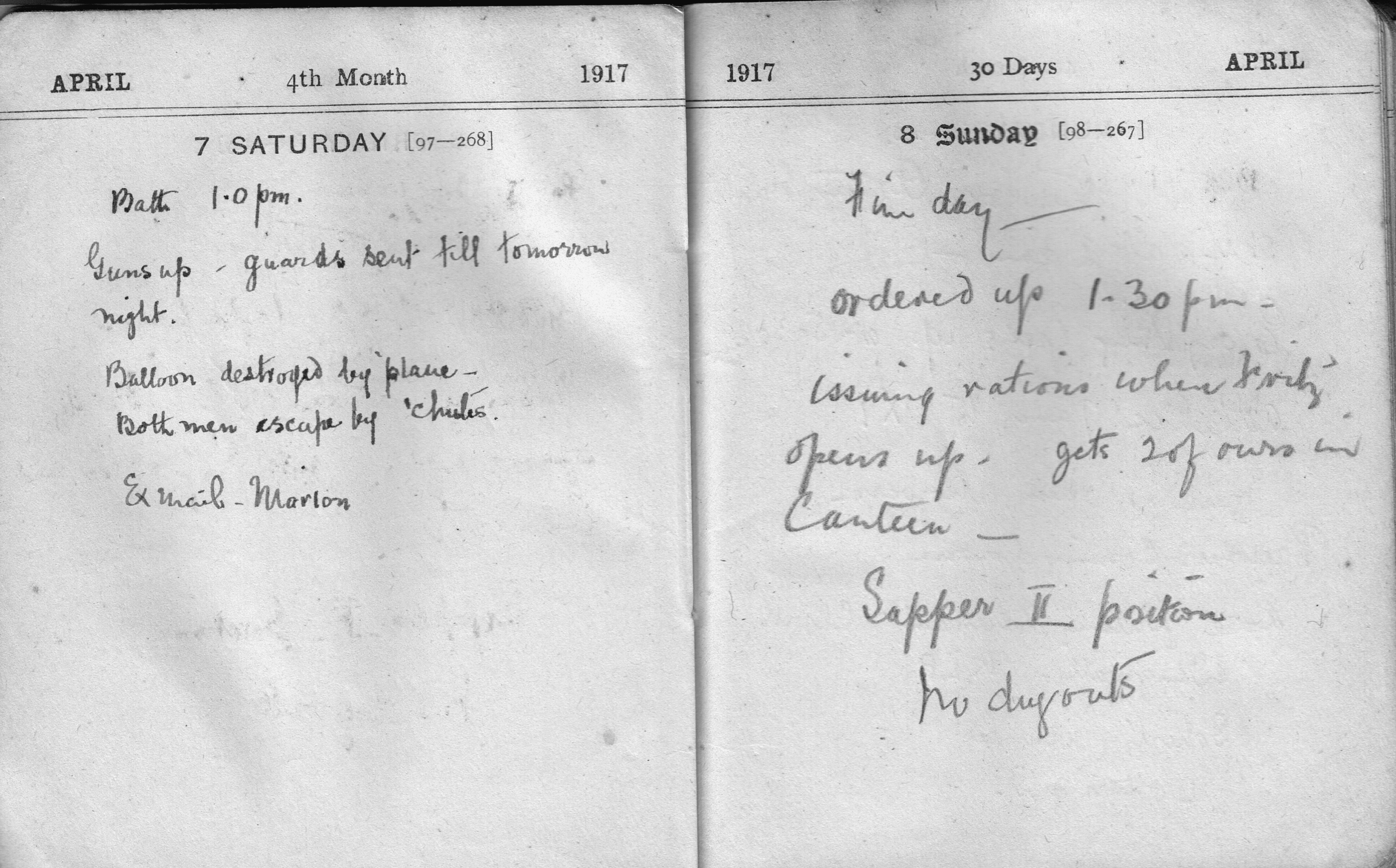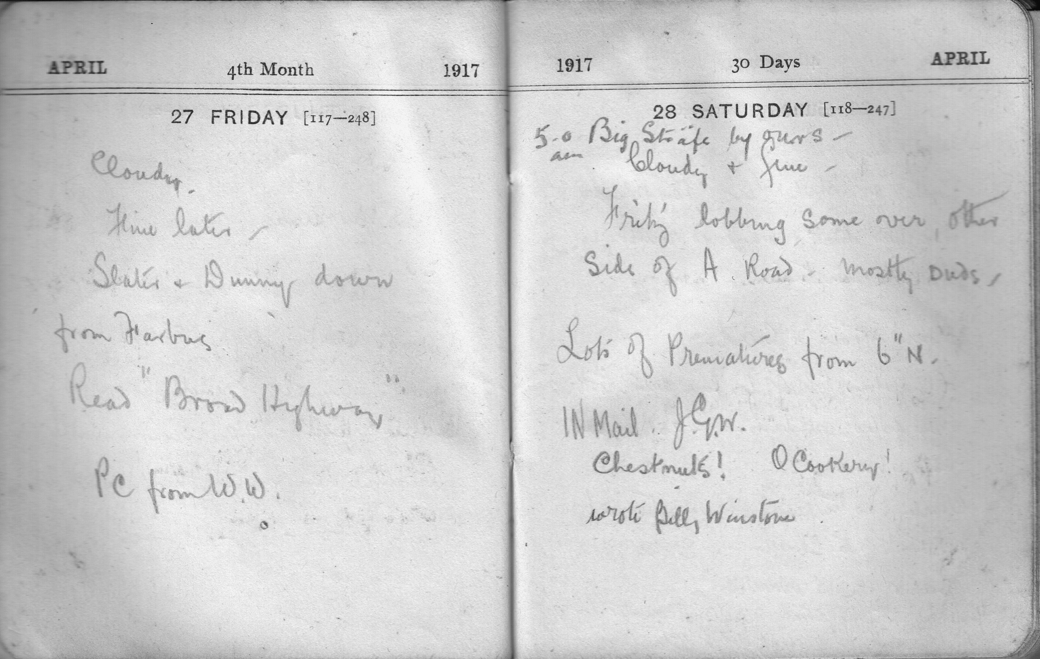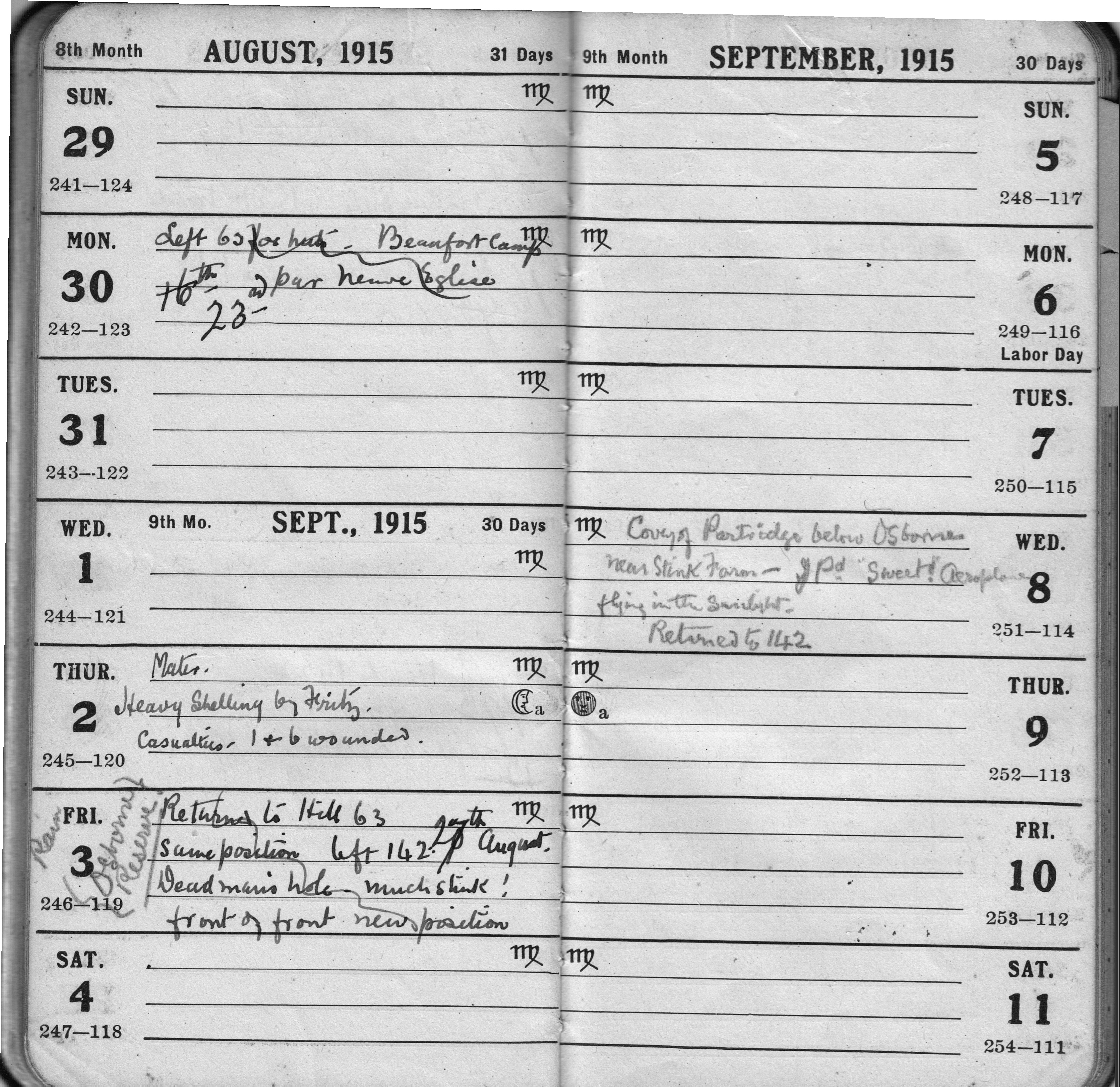 Object Desc Selection of Riley Walter W. diary pages and writings pertaining to WW1. Service # 63764 Sergeant. Originals borrowed from Allan Riley and returned.