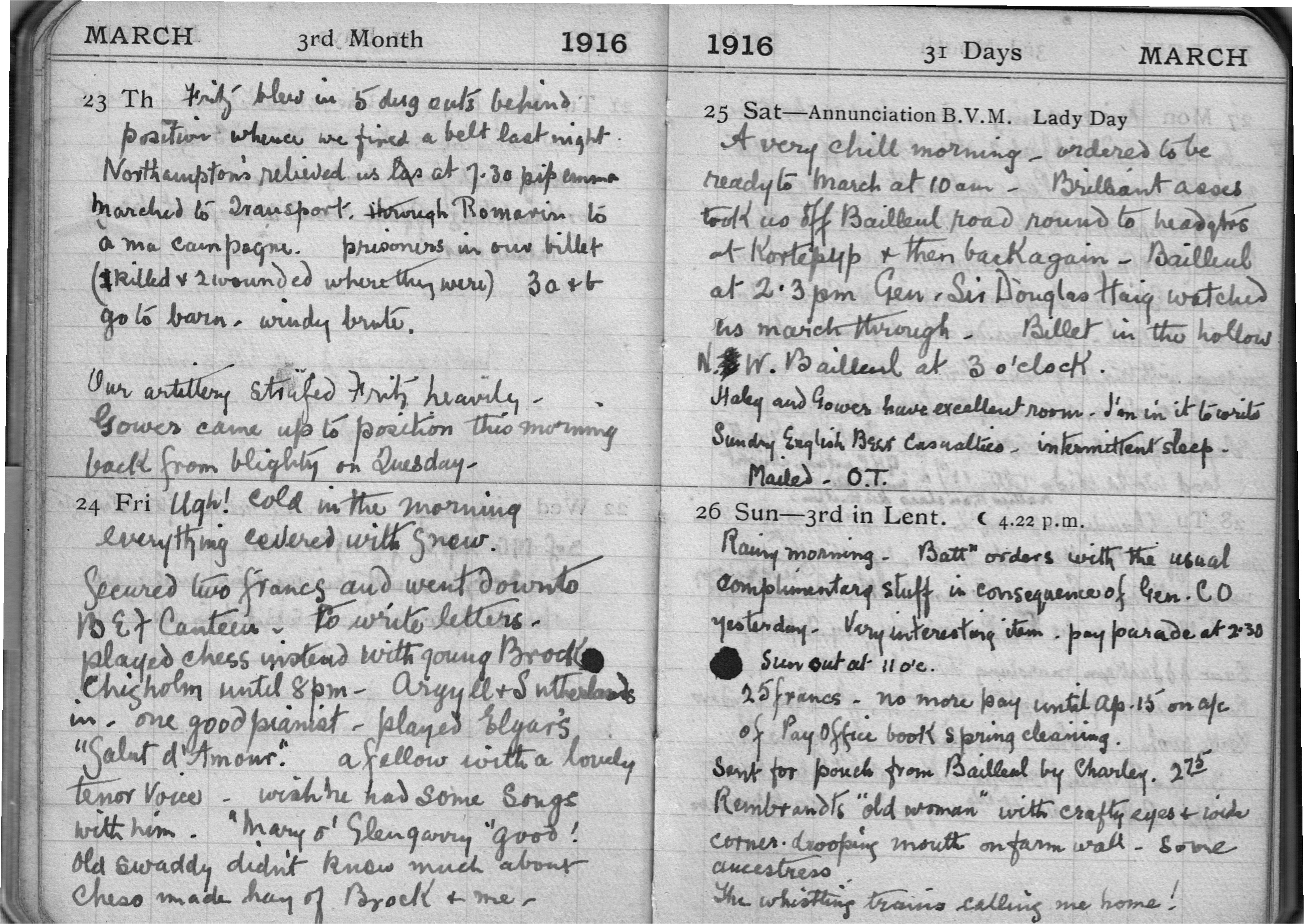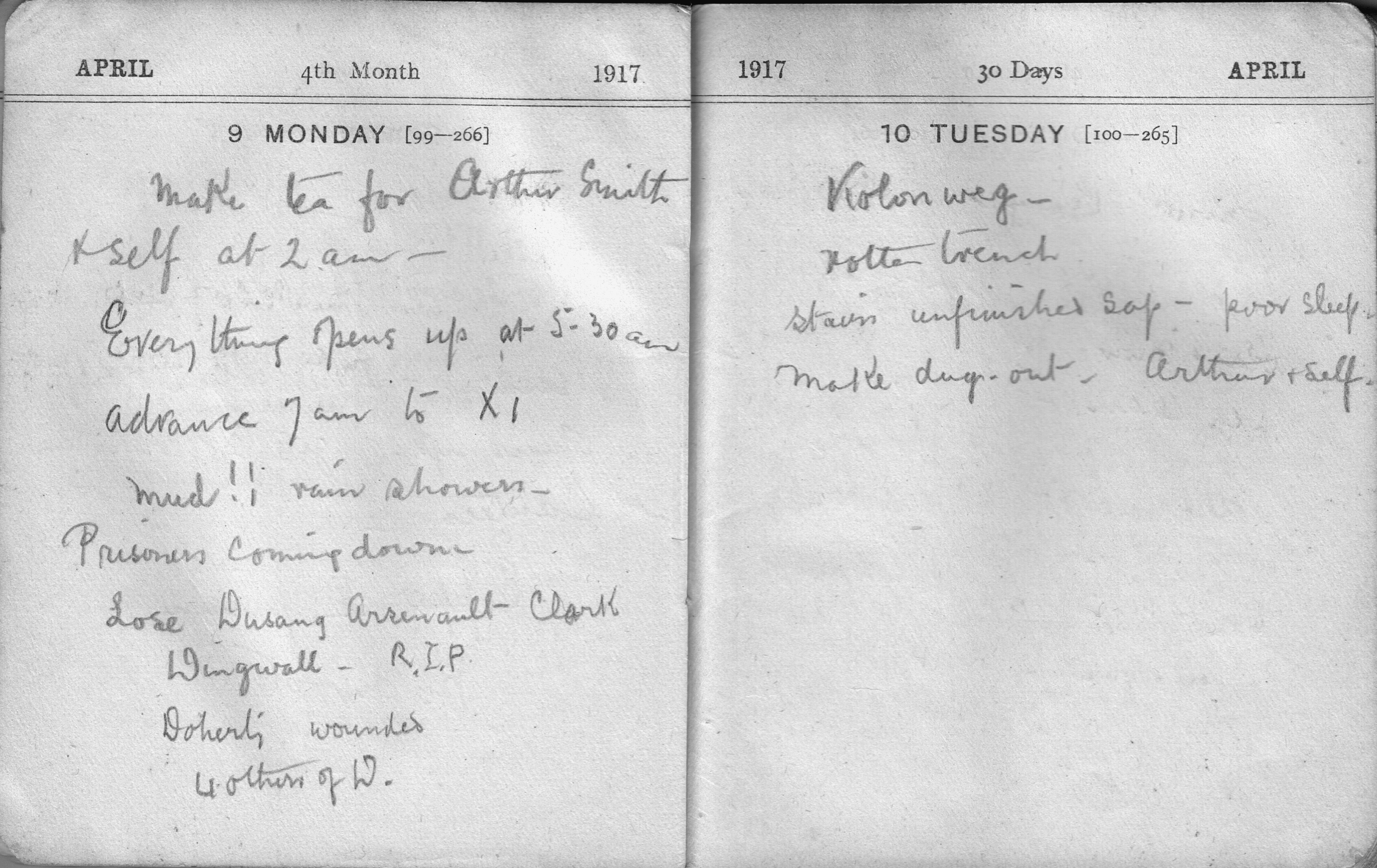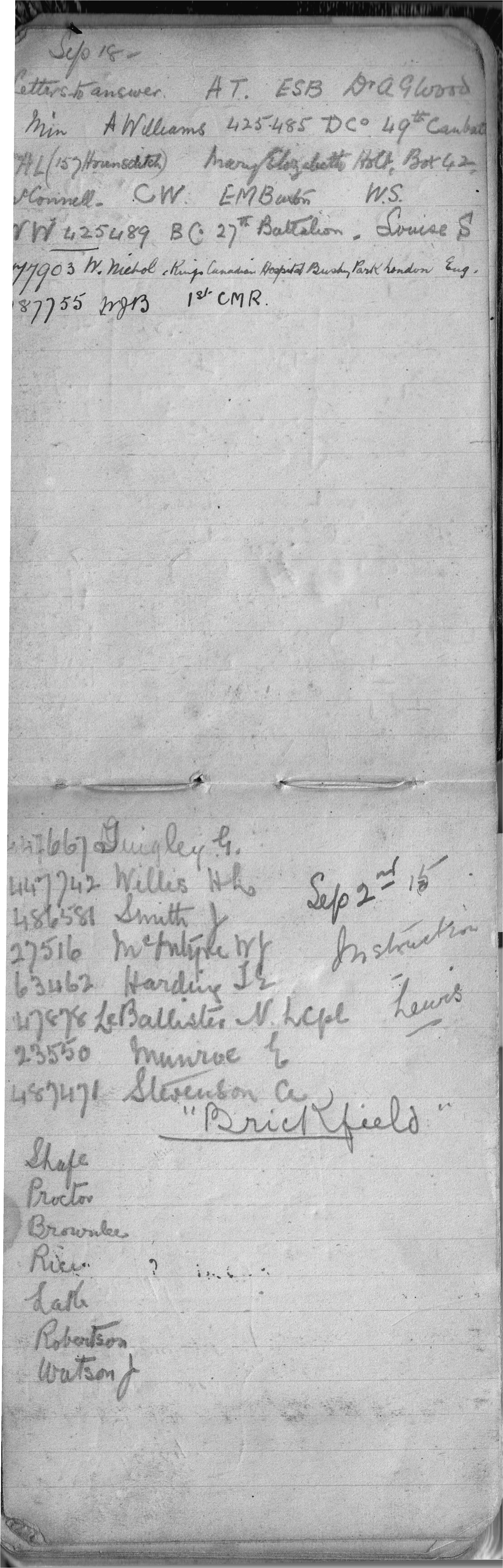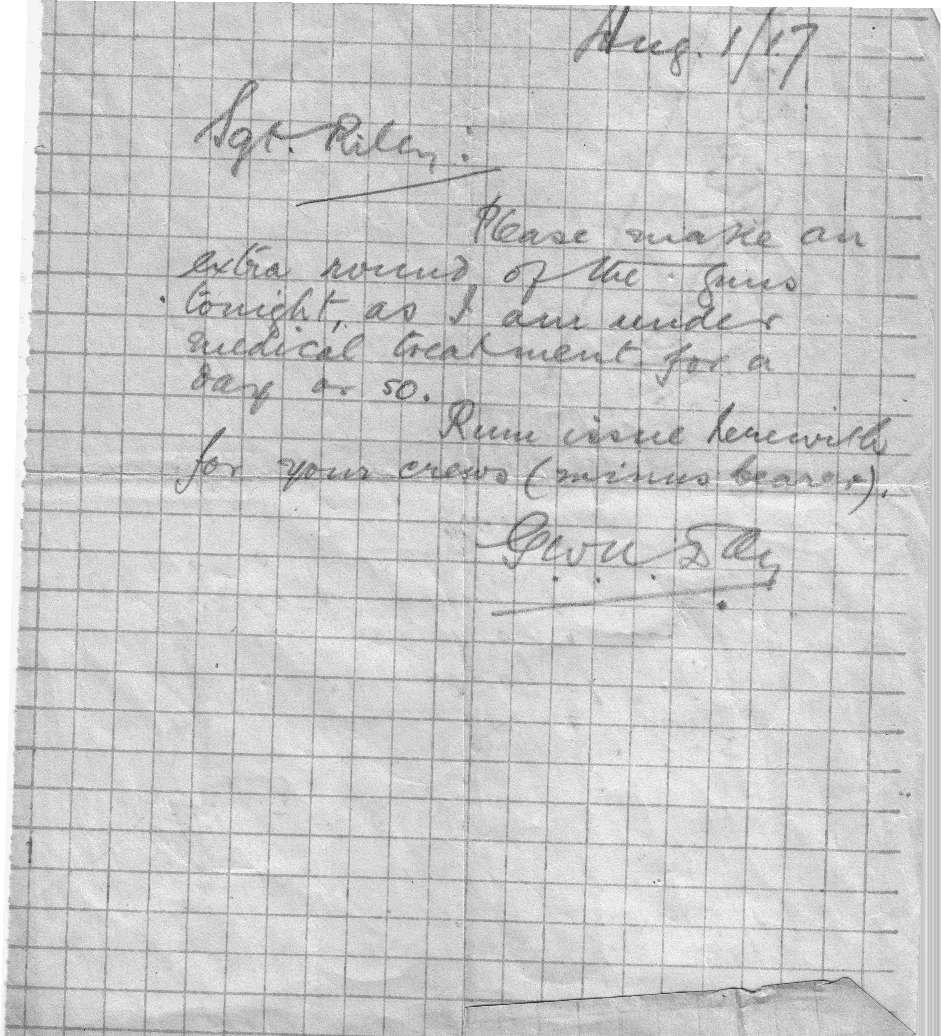 Object Desc Selection of Riley Walter W. diary pages and writings pertaining to WW1. Service # 63764 Sergeant. Originals borrowed from Allan Riley and returned.