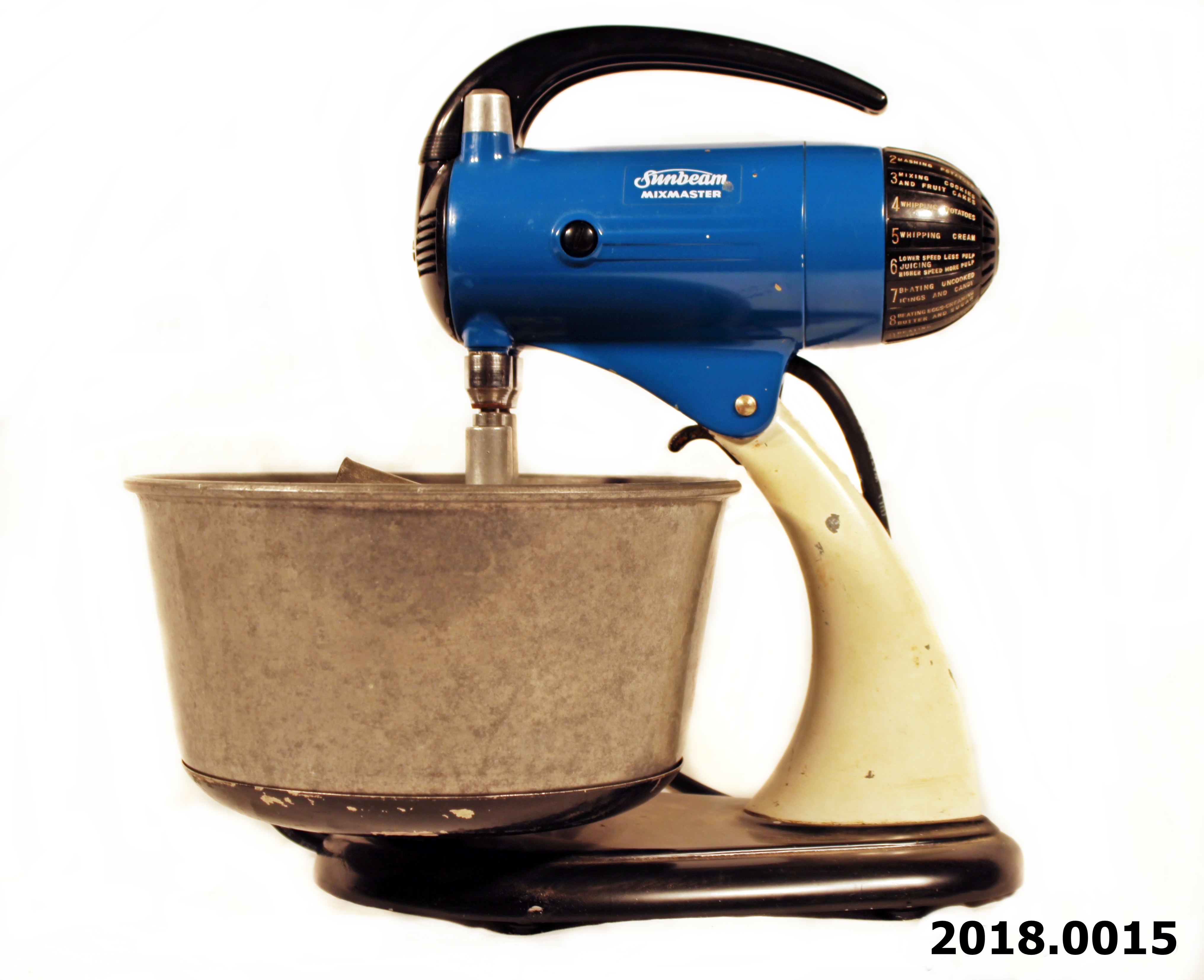 Notes This Sunbeam Mixmaster with bean slicer attachment started manufacturing on September 9, 1937. This attachment is extremely rare. 2018.0015
