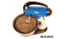 Object Desc Dark blue Sunbeam electric stand mixer with bean cutter and bowl attachment. Extremely rare.
