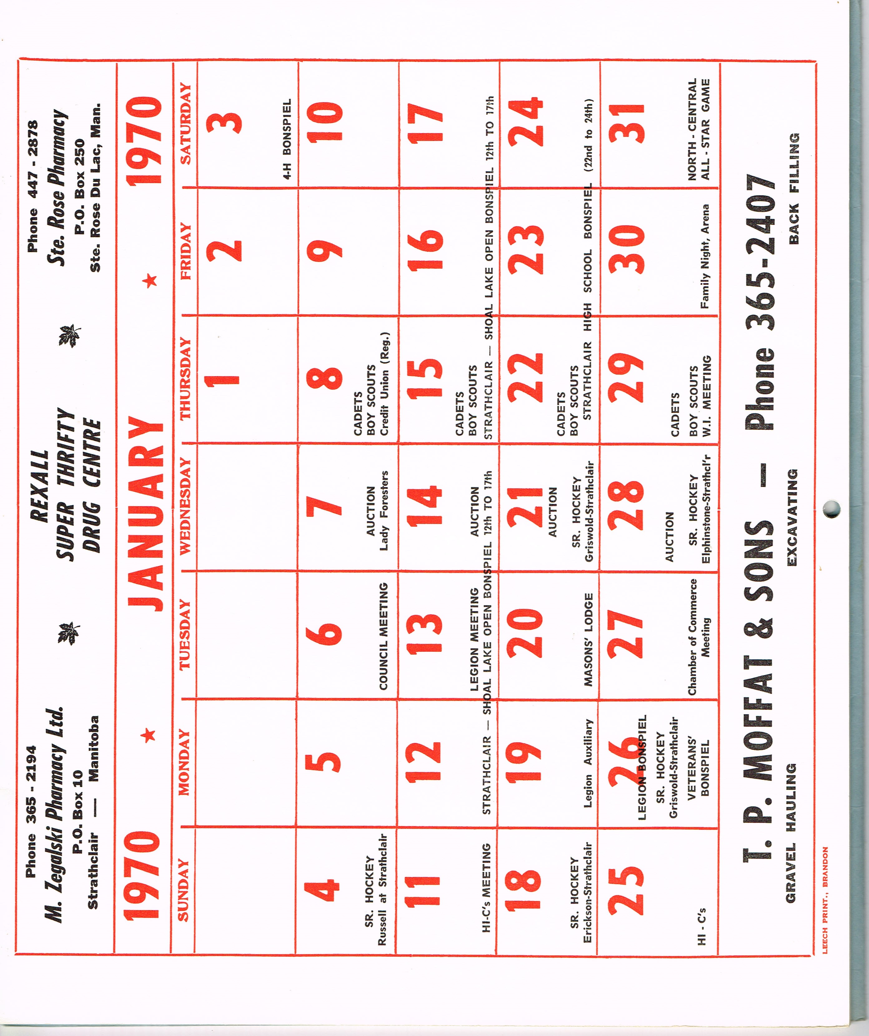 Object Desc Strathclair Cenntenial Calendar 1970 Manitoba Centennial