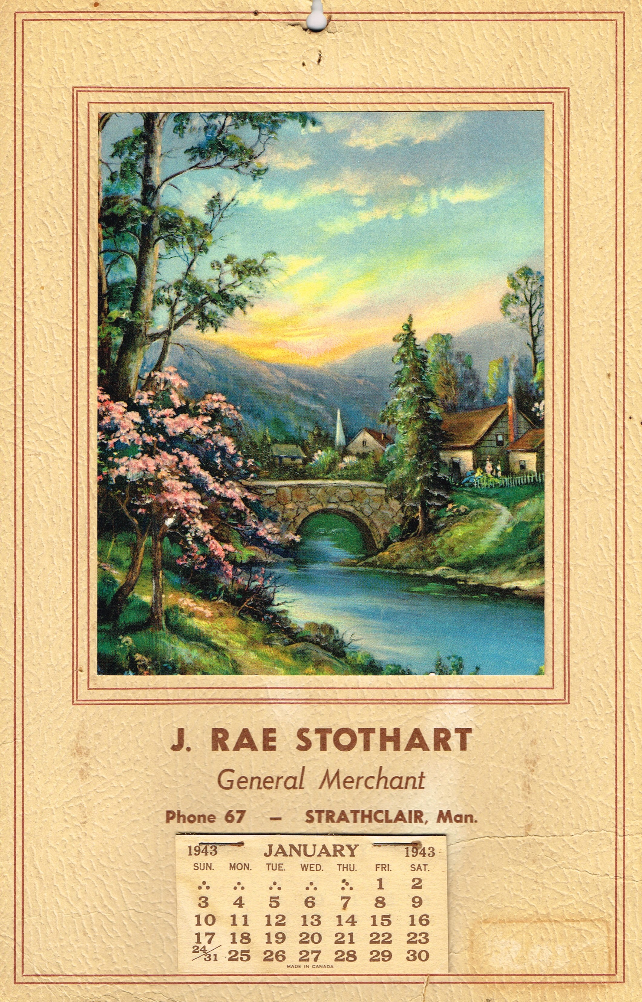 Object Name J. Rae Stothart calendar