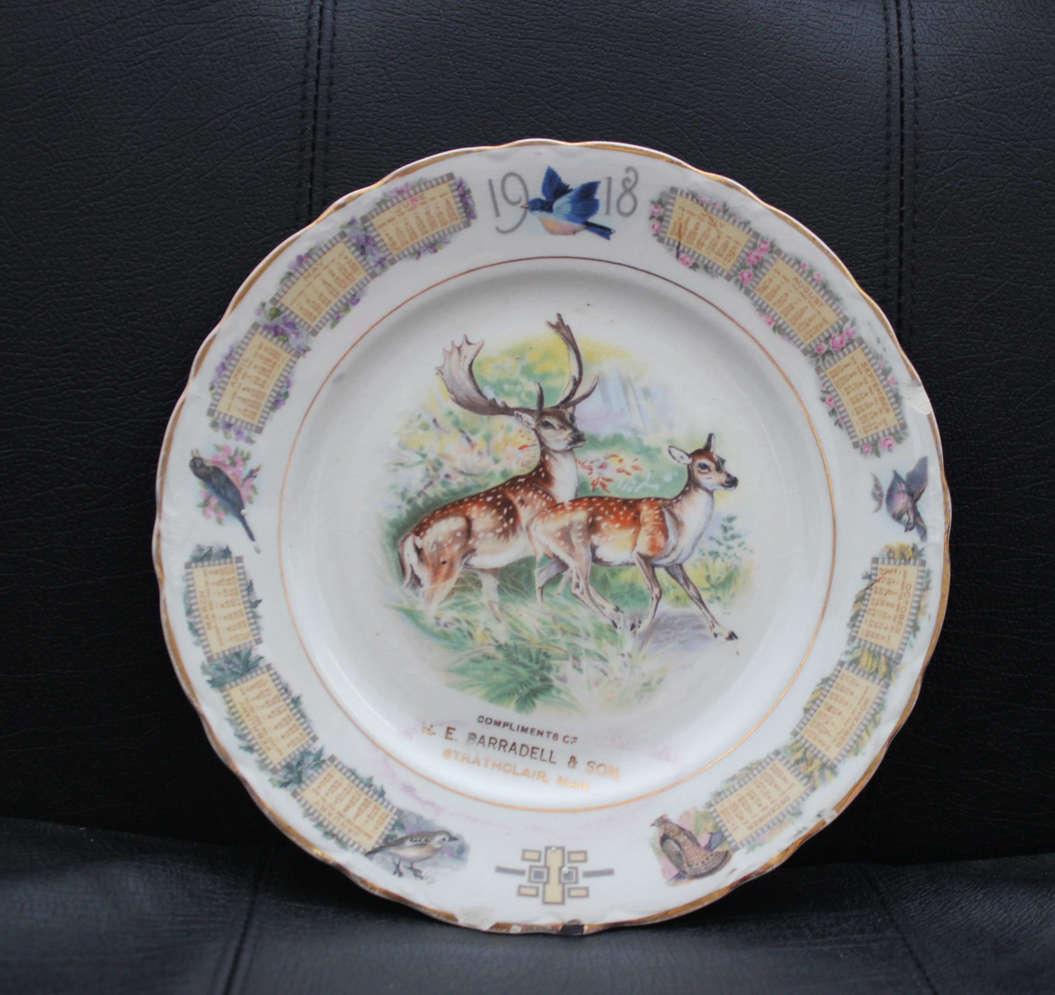 Object Desc Commemorative Plate, with calendar markings, given out by R. E. Barradell and Son, general store 1918