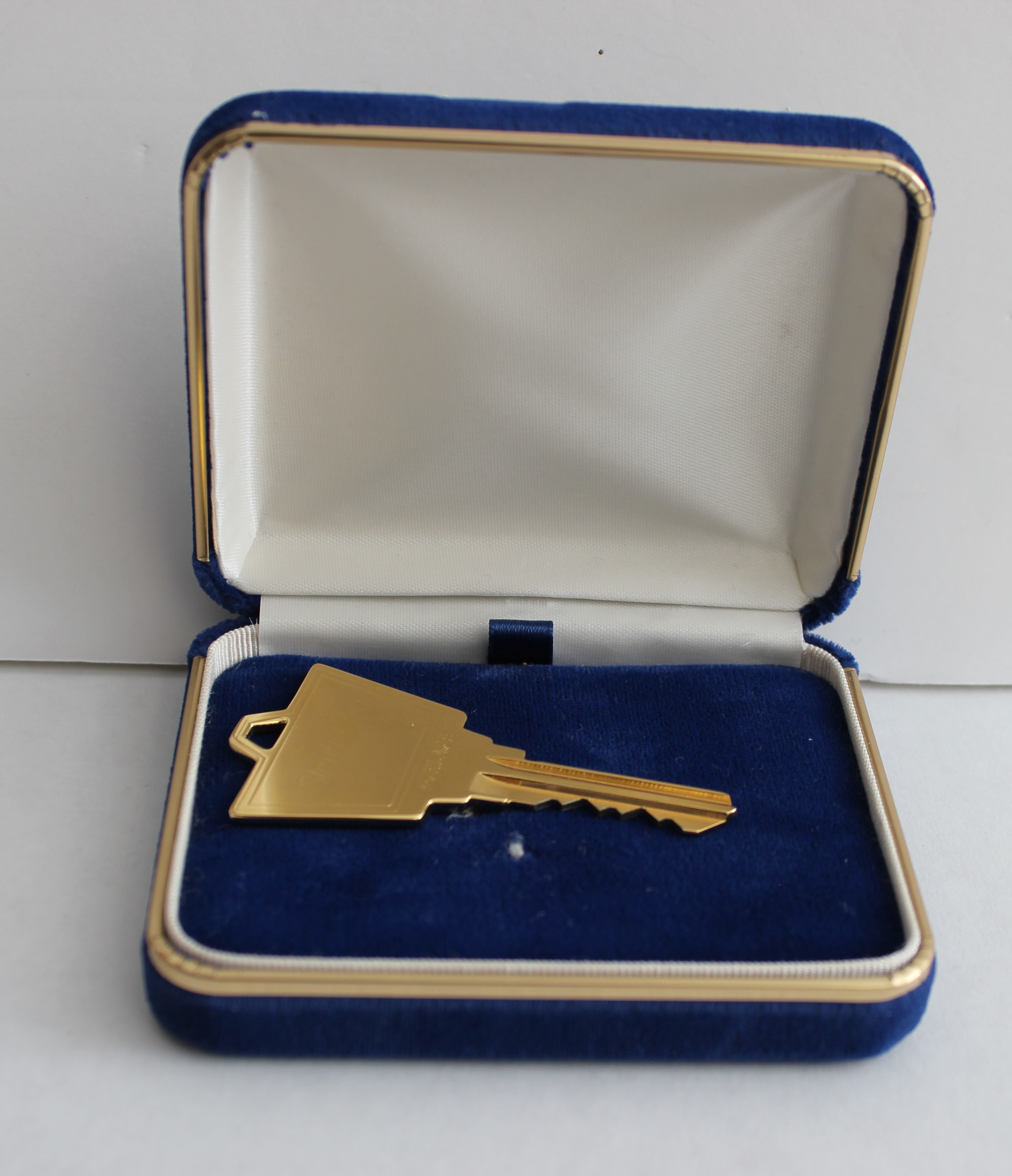 Object Desc Key, commemorative opening new credit union building 1998. Key was presented to Ron Hedley who was the General Manager by the architect, Henry J. Neufeld (NAC Services)