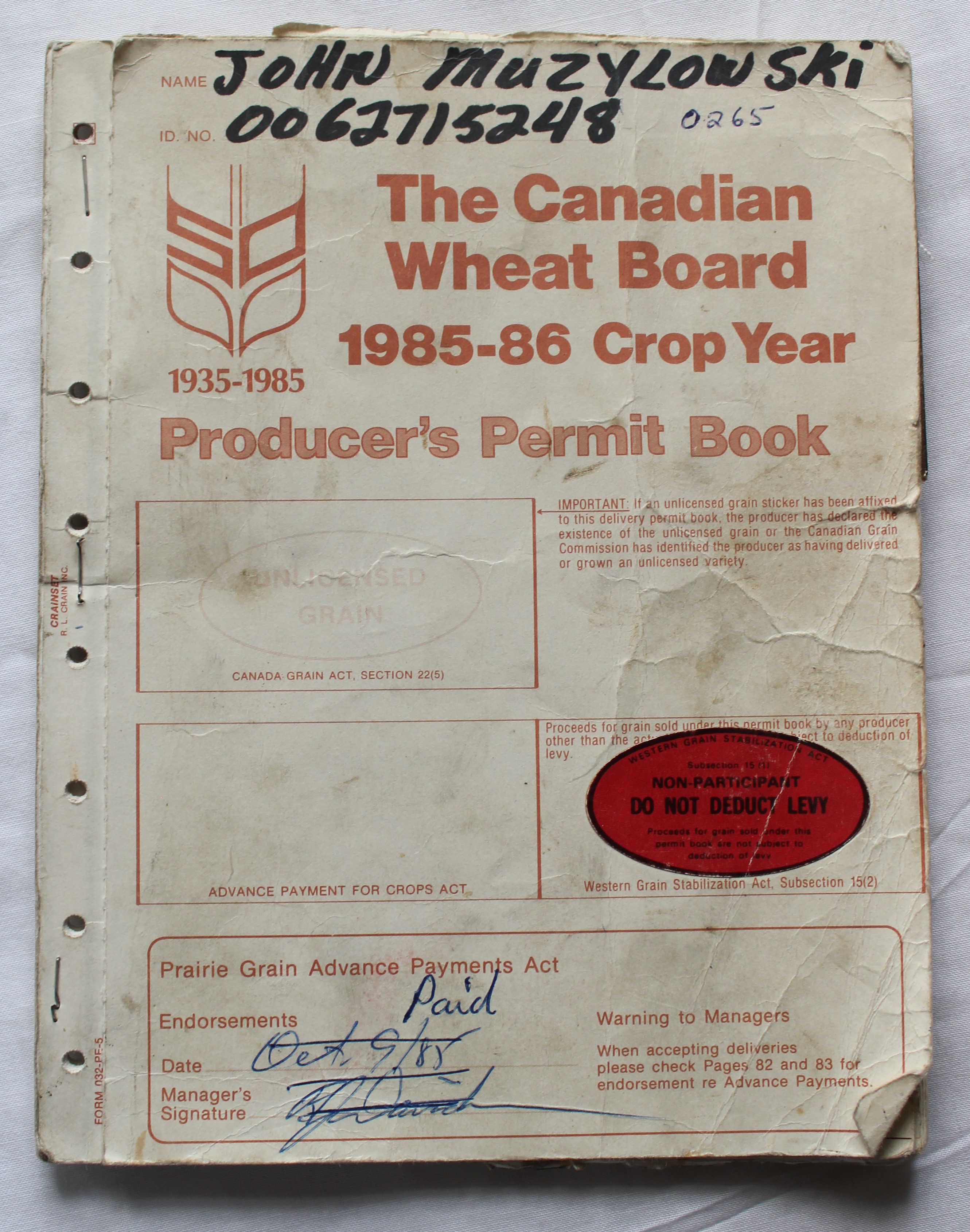 Object Desc Canadian Wheat Board Permit Book 1985-86