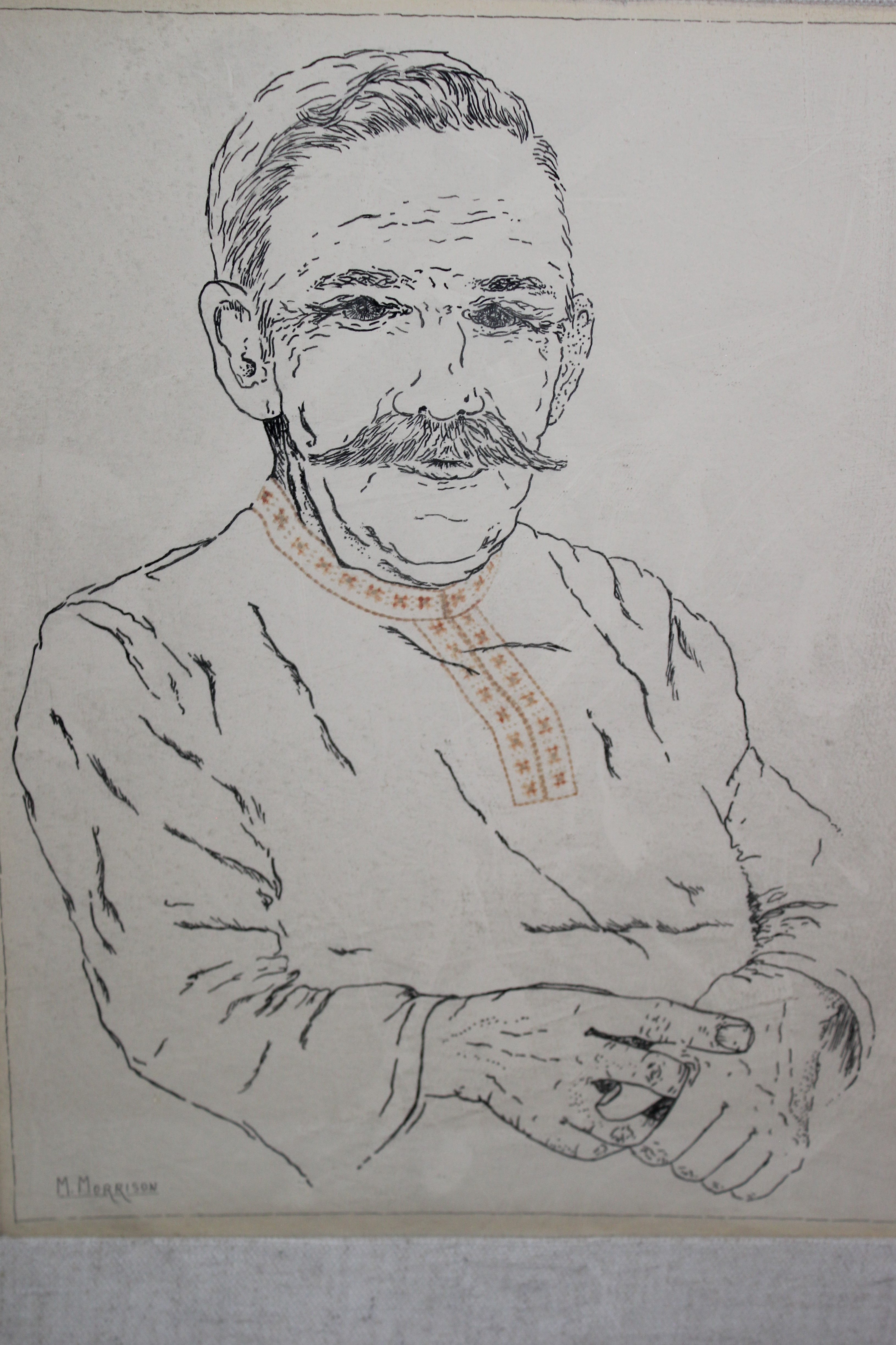 Object Desc Portrait of Man by Mary Morrison, Belonged to the Morley House of Shoal Lake,1982