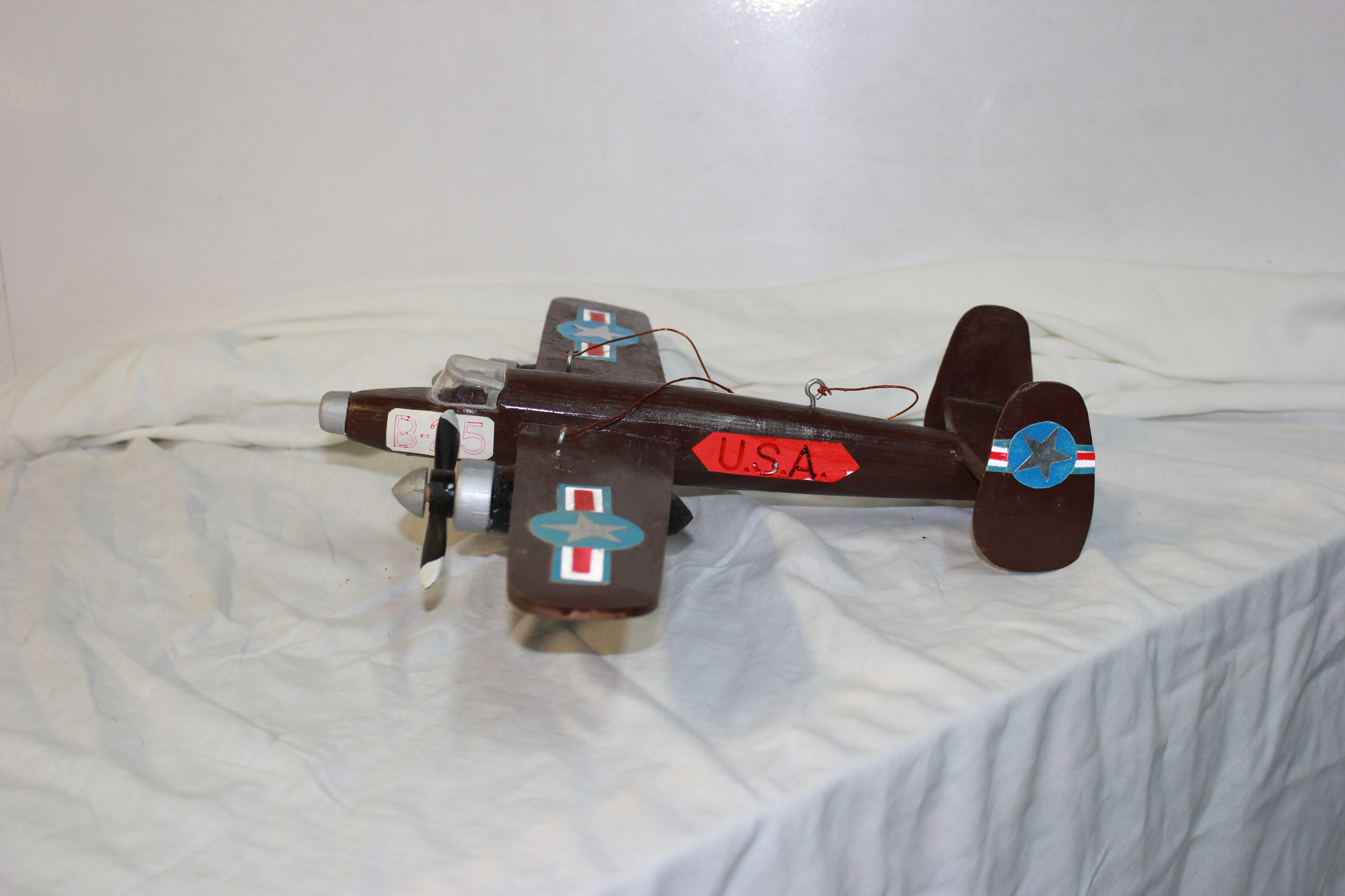 Object Desc Airplane, USA, Brown, Wooden, Handcrafted by Ralph Zachary of Sandy Lake