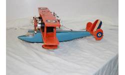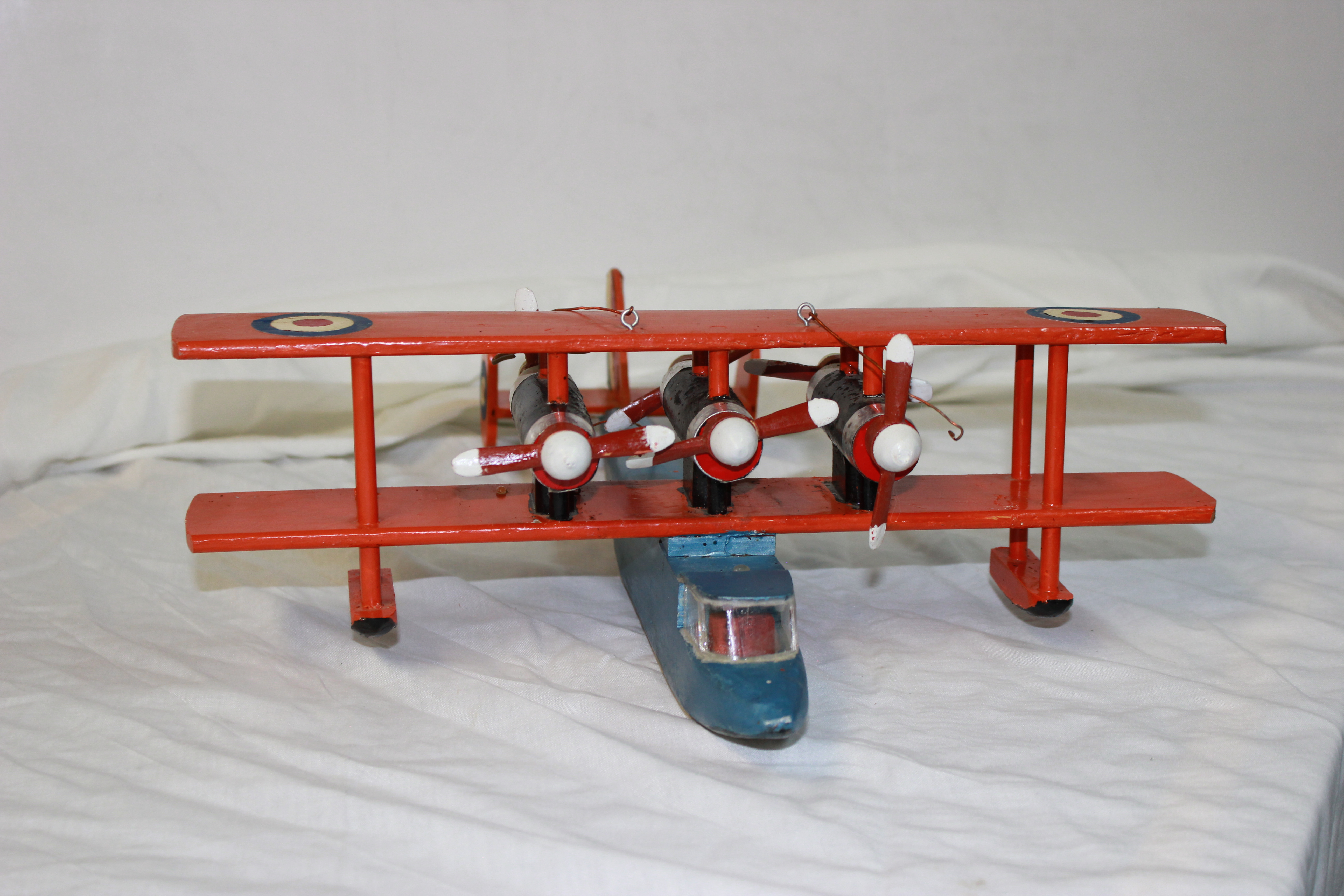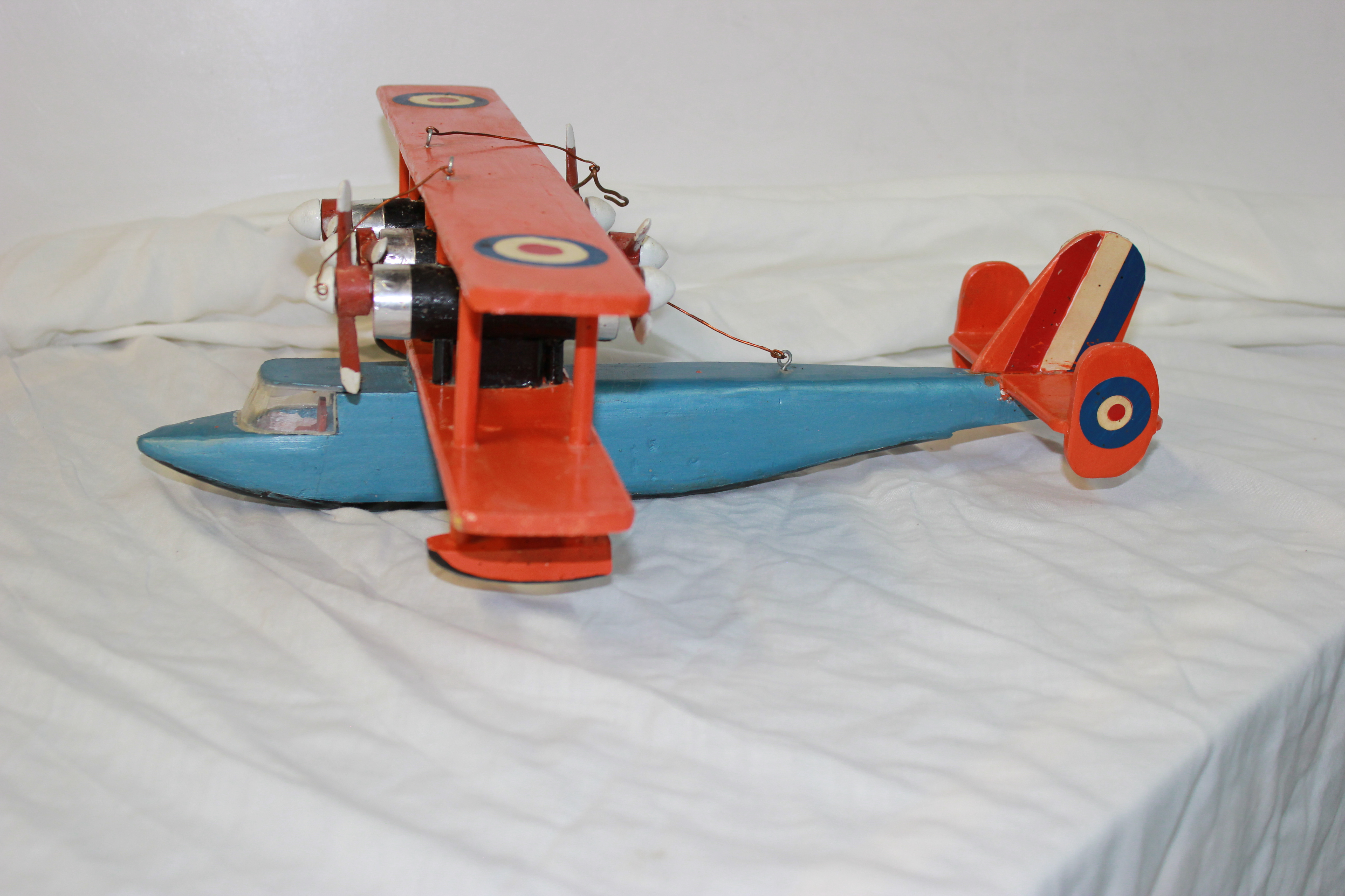 Object Desc Airplane, Orange & Blue, Wooden, Handcrafted by Ralph Zachary of Sandy Lake