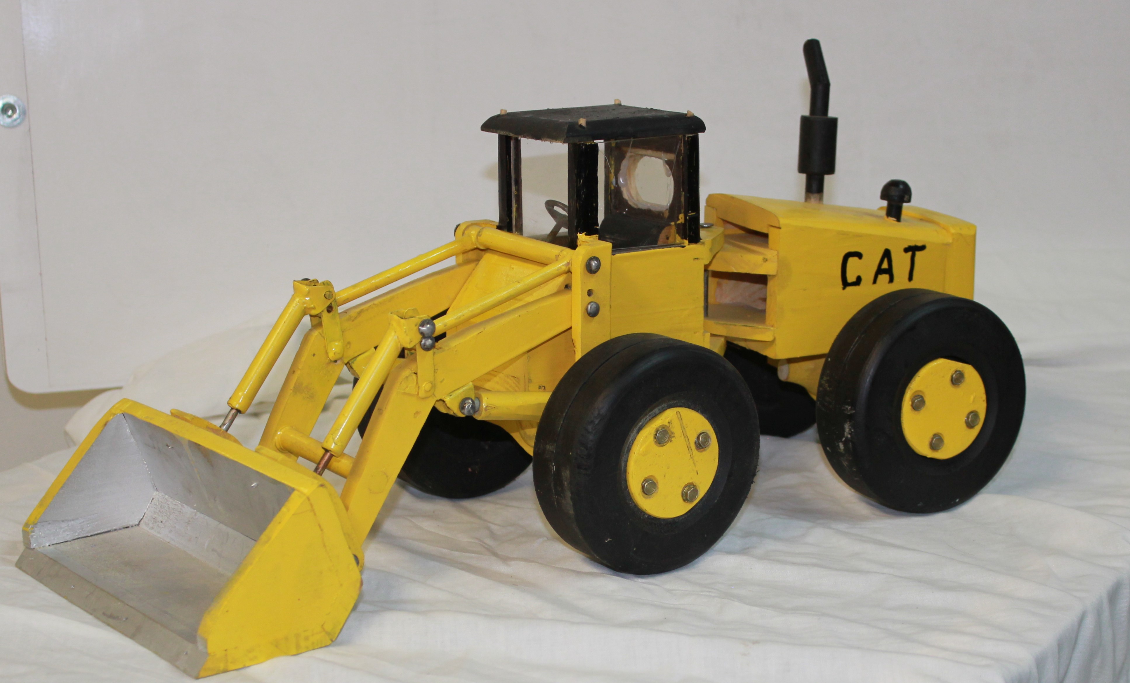 Object Desc Caterpillar, Machine, Wooden, Handcrafted by Ralph Zachary of Sandy Lake