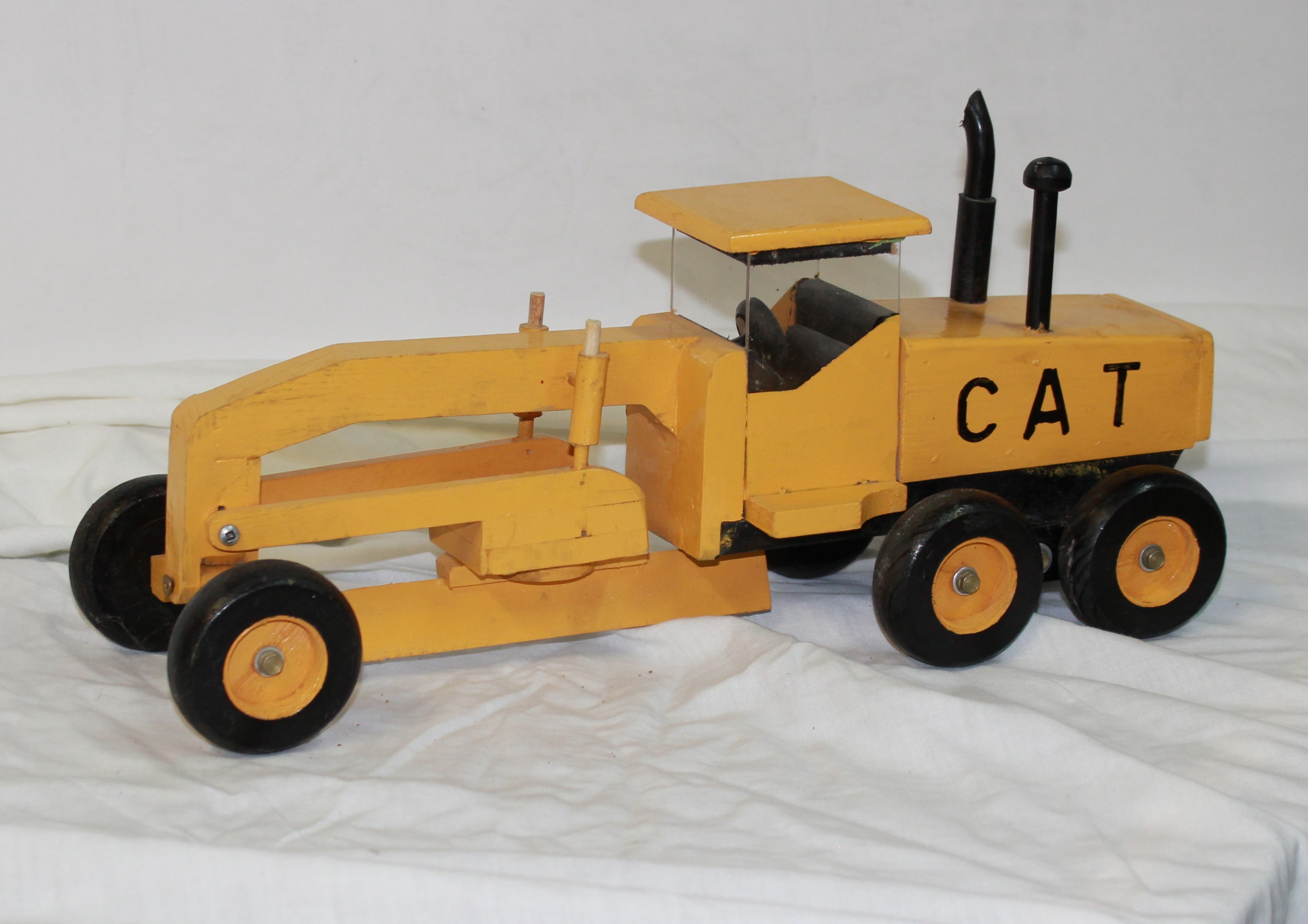 Object Desc Caterpillar, Road Grader, Wooden, Handcrafted by Ralph Zachary of Sandy Lake