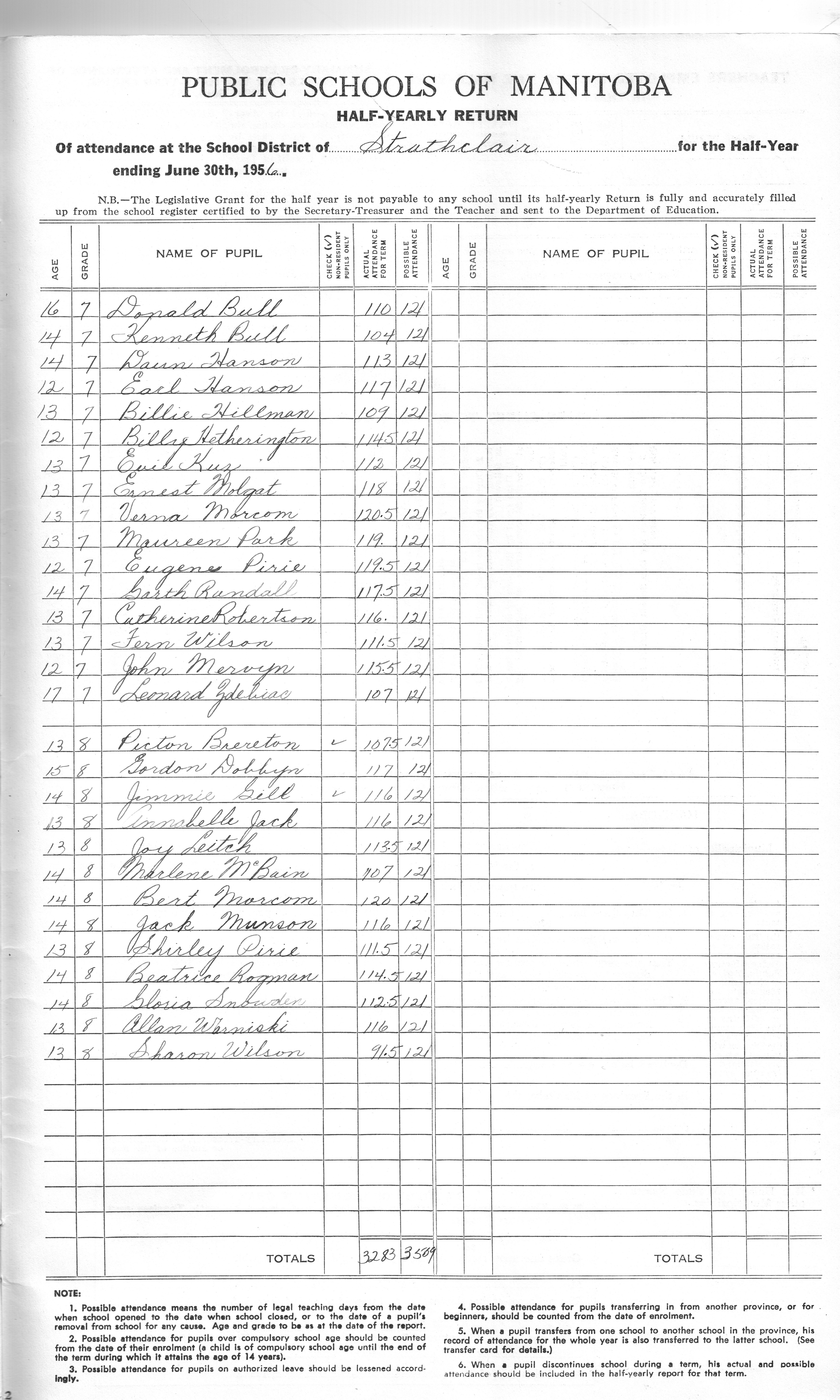 Object Name Strathclair Consol. Sch. #284, 1955-56