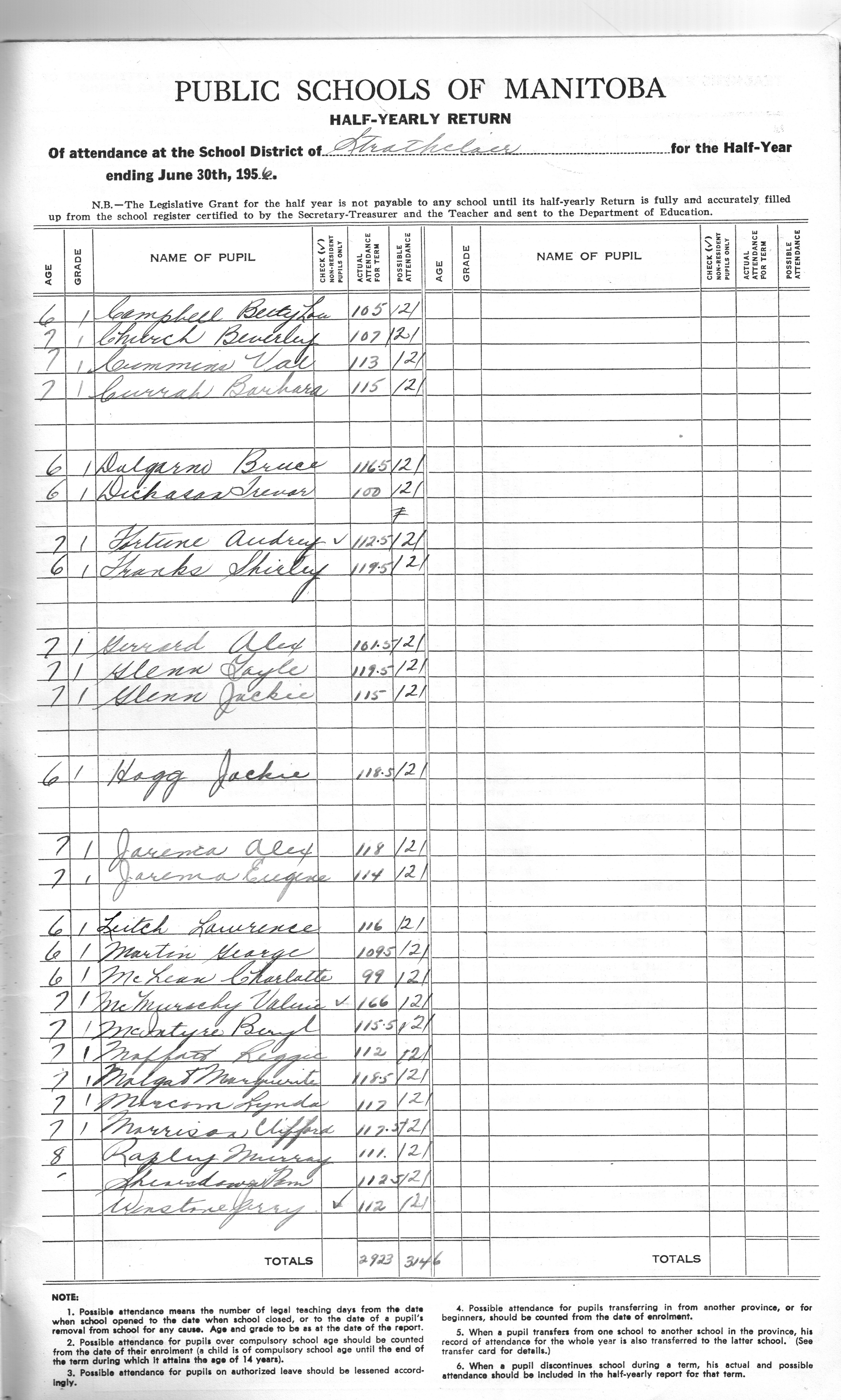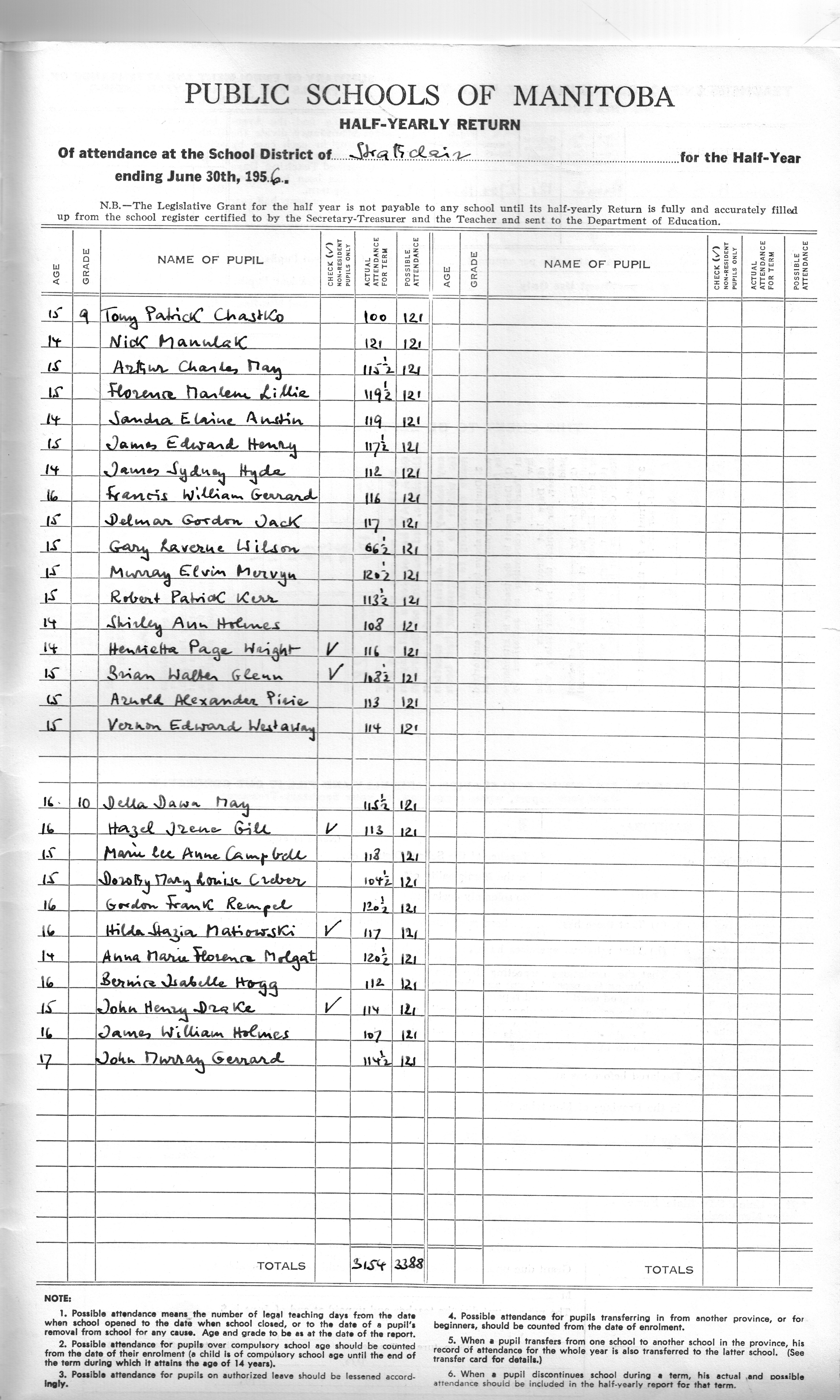 Description 2019.0001 IM10 Teacher, B Armstrong; Christie, Audrey(G5); Fleury, Doreen(G5); Gill, Mabel(G5), Glenn, Garry(G5); Grills, Orville(G5); Henry, Sylvia(G5); Jack, Norman(G5); McCutcheon, Wayne(G5); McLean, Glen(G5); Pirie, Irene(G5); Rognan, Gunnar(G5); Rose, Laverne(G5); Sheardown, Dale(G5); Westaway,Elaine(G5); Wilson, Durwood(G5); Bull, Robert(G6); Currah, Gwen(G6); Fleury, Audrey(G6); Fortune, Beverley(G); Franks, Glen(G6); Grills, Beverley(G6); Jarema, Rudy(G6); Hryhoryshin, Mike(G6); Kotyk, Edward(G6); Leitch, Shirley(G6); Lipinski, Audrey(G6); McMillan, Ralph(G6); McMillan, Donna(G6); Manulak, Phyllis(G6); Rapley, Ronald(G6); Rutkowski, Sally(G6); Rose, Judy(G6); Sheardown, Alan(G6); Sitko,Melville(G6); Winstone, Kathleen(G6);