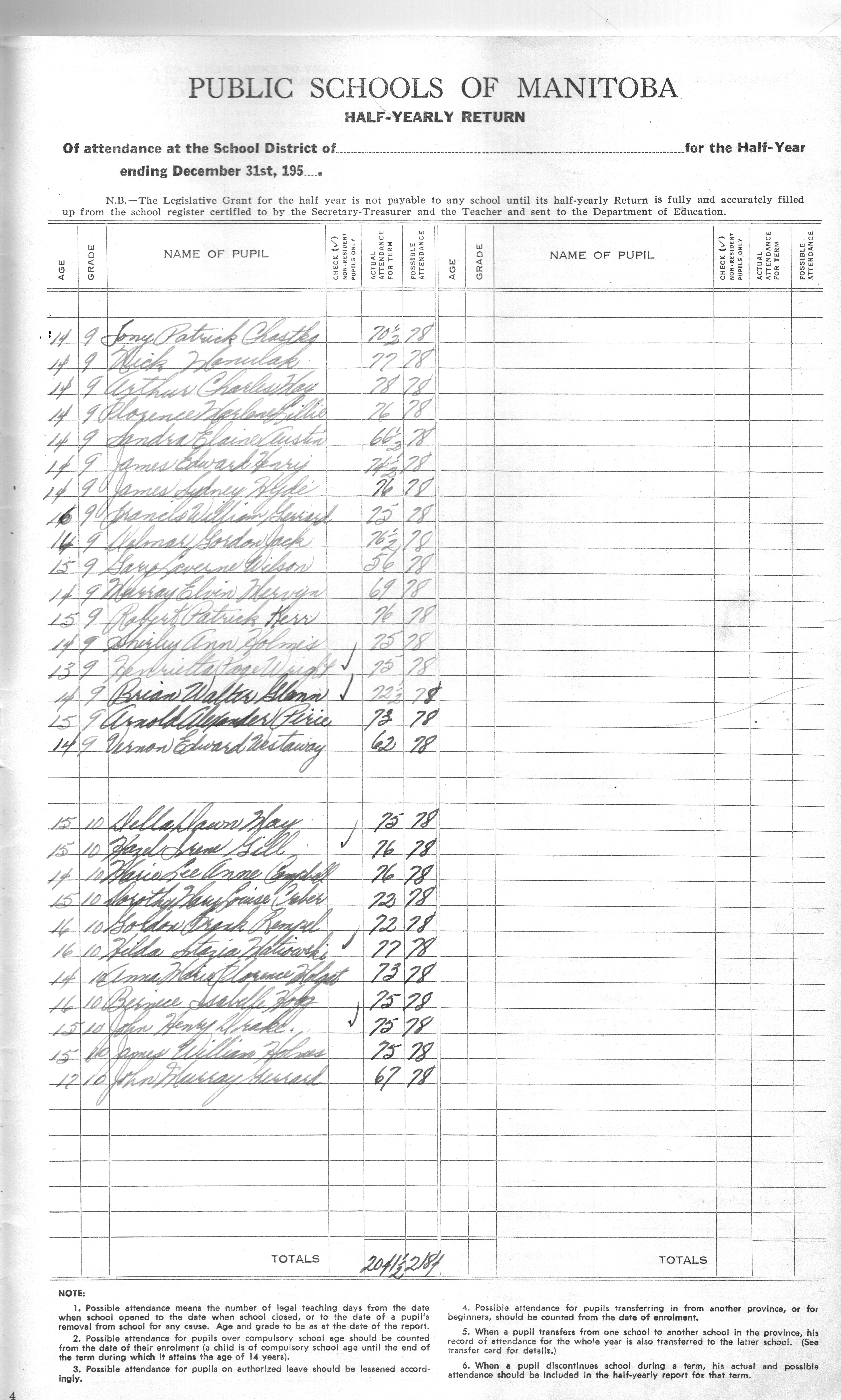 Description 2019.0001 IM9 Teacher, B Armstrong; Christie, Audrey(G5); Fleury, Doreen(G5); Gill, Mabel(G5), Glenn, Garry(G5); Grills, Orville(G5); Henry, Sylvia(G5); Jack, Norman(G5); McCutcheon, Wayne(G5); McLean, Glen(G5); Pirie, Irene(G5); Rognan, Gunnar(G5); Rose, Laverne(G5); Sheardown, Dale(G5); Westaway,Elaine(G5); Wilson, Durwood(G5); Bull, Robert(G6); Currah, Gwen(G6); Fleury, Audrey(G6); Fortune, Beverley(G); Franks, Glen(G6); Grills, Beverley(G6); Jarema, Rudy(G6); Hryhoryshin, Mike(G6); Kotyk, Edward(G6); Leitch, Shirley(G6); Lipinski, Audrey(G6); McMillan, Ralph(G6); McMillan, Donna(G6); Manulak, Phyllis(G6); Rapley, Ronald(G6); Rutkowski, Sally(G6); Rose, Judy(G6); Sheardown, Alan(G6); Sitko,Melville(G6); Winstone, Kathleen(G6);