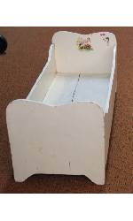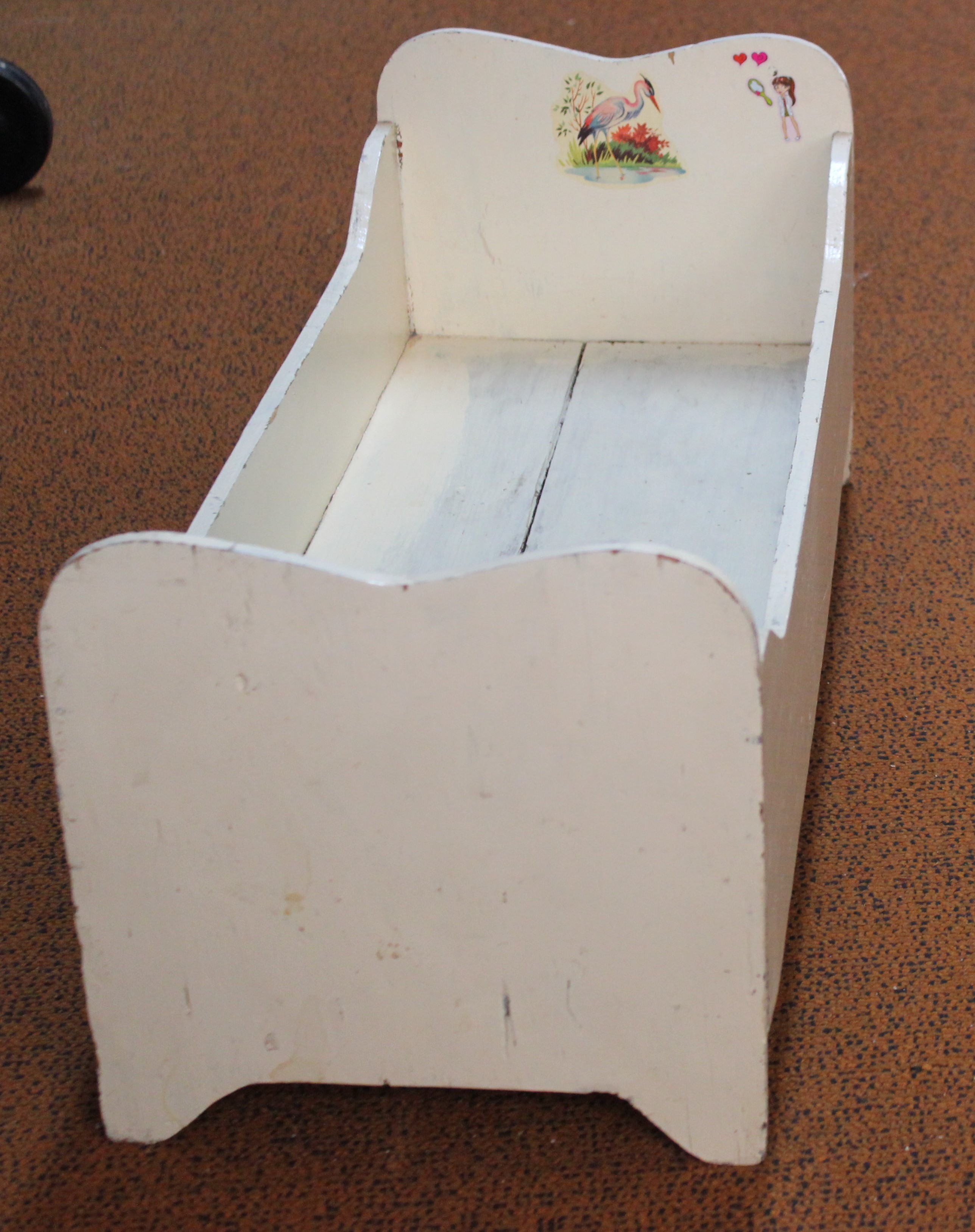 Object Desc Wooden doll bed made by Clair Bryc for his niece Heather (Morrison ) Koss, around 1952