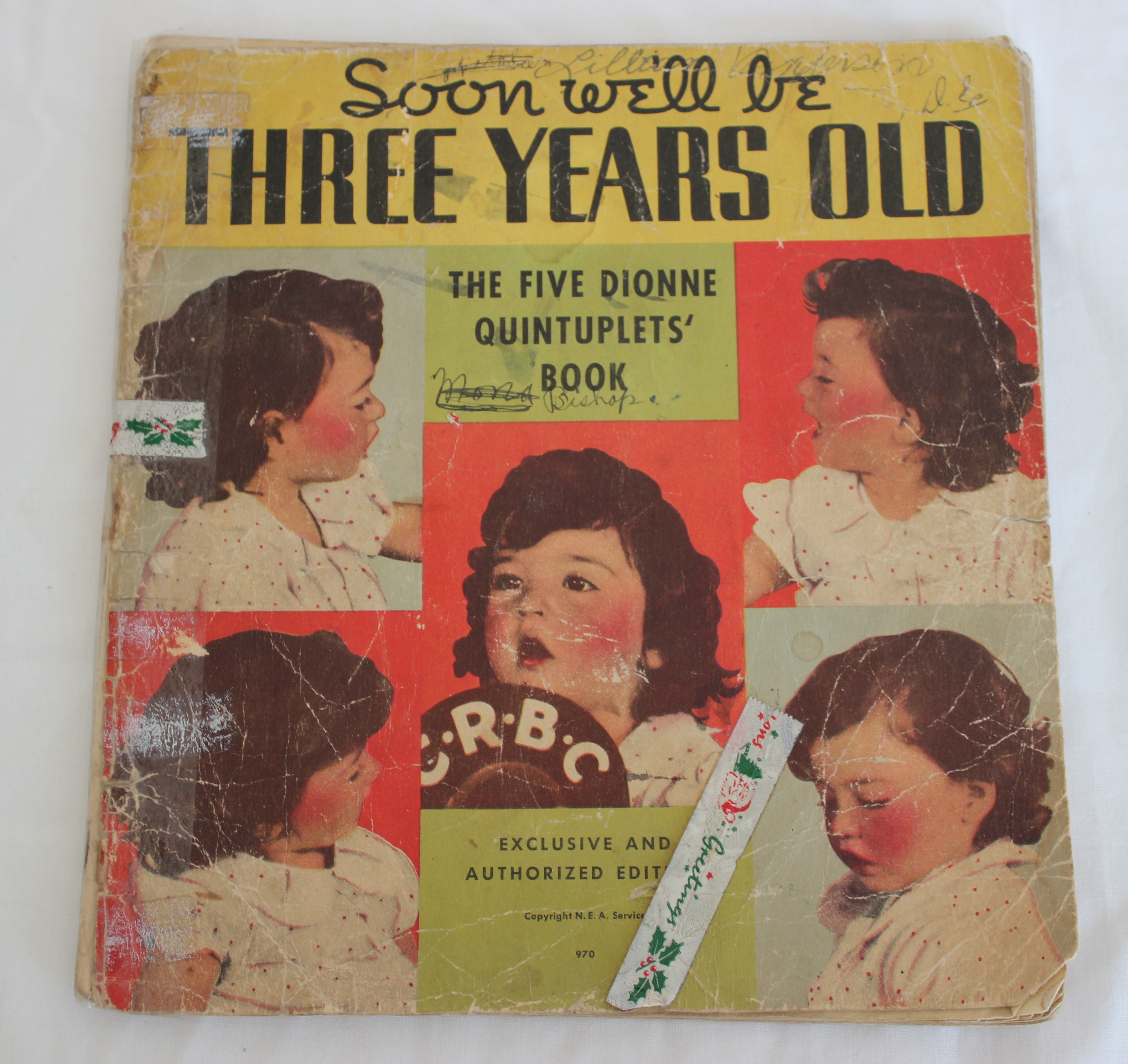Object Desc Book about the 5 Dionne Quintuplets owned by Lillian Anderson Married to W. Frazer Waddell from Newdale