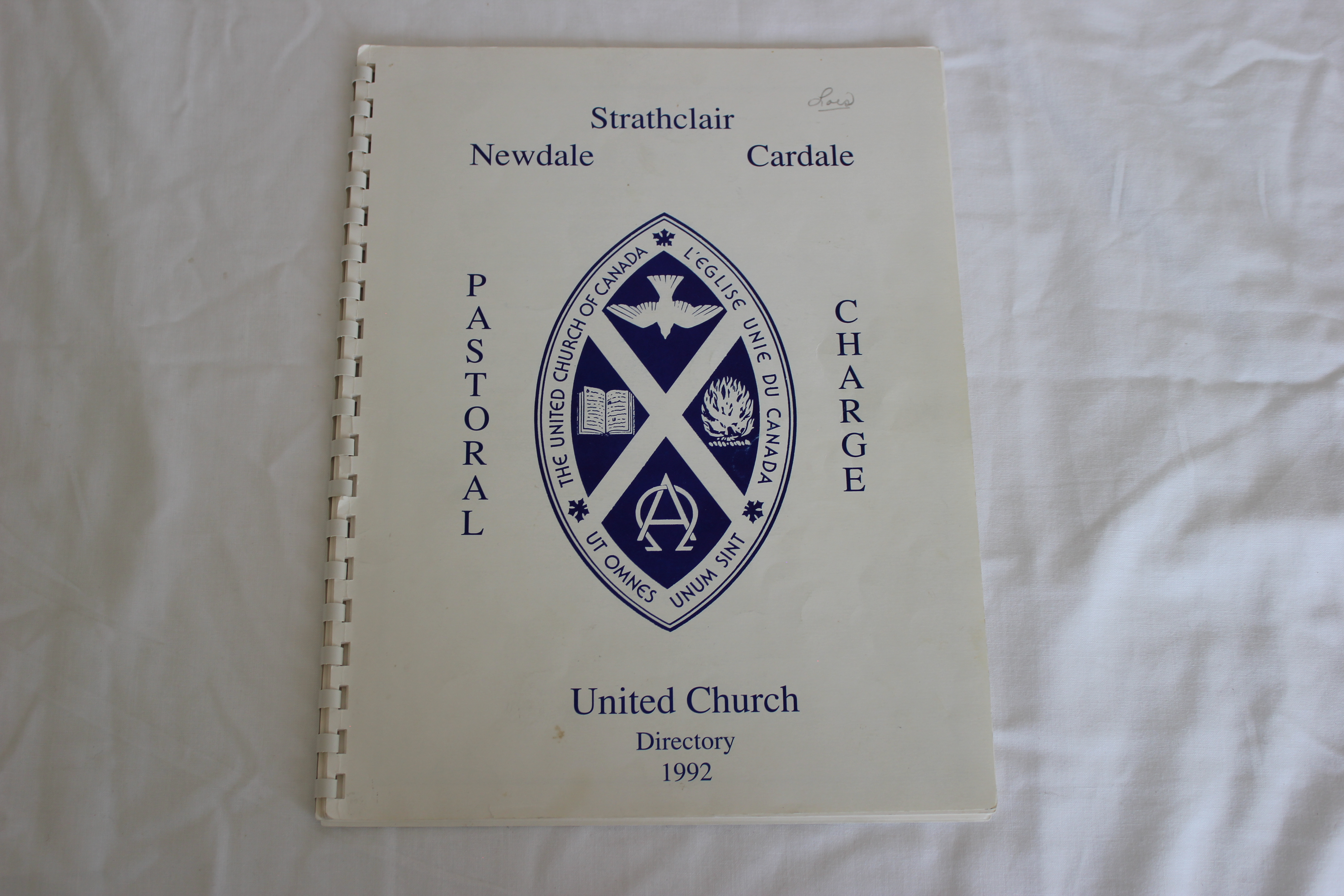 Object Desc Newdale, Strathclair, Cardale United Church directory for 1992. Donated by the United Church Committee.