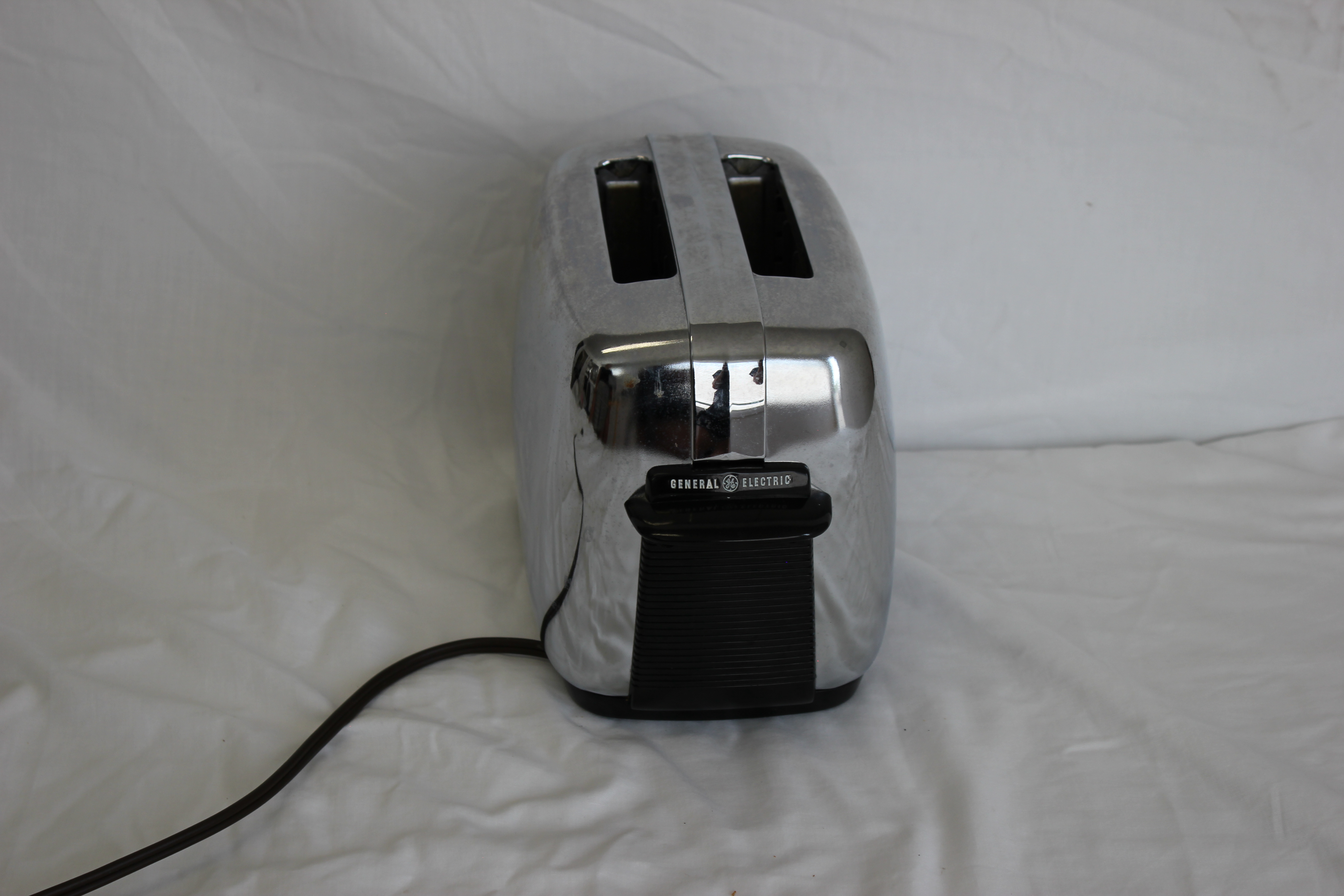 Object Desc Metal, SIlver, Toaster G.E. Electric Toaster purchased in the early 1960's Donated by Marilyn Fraser