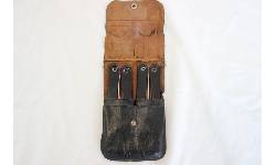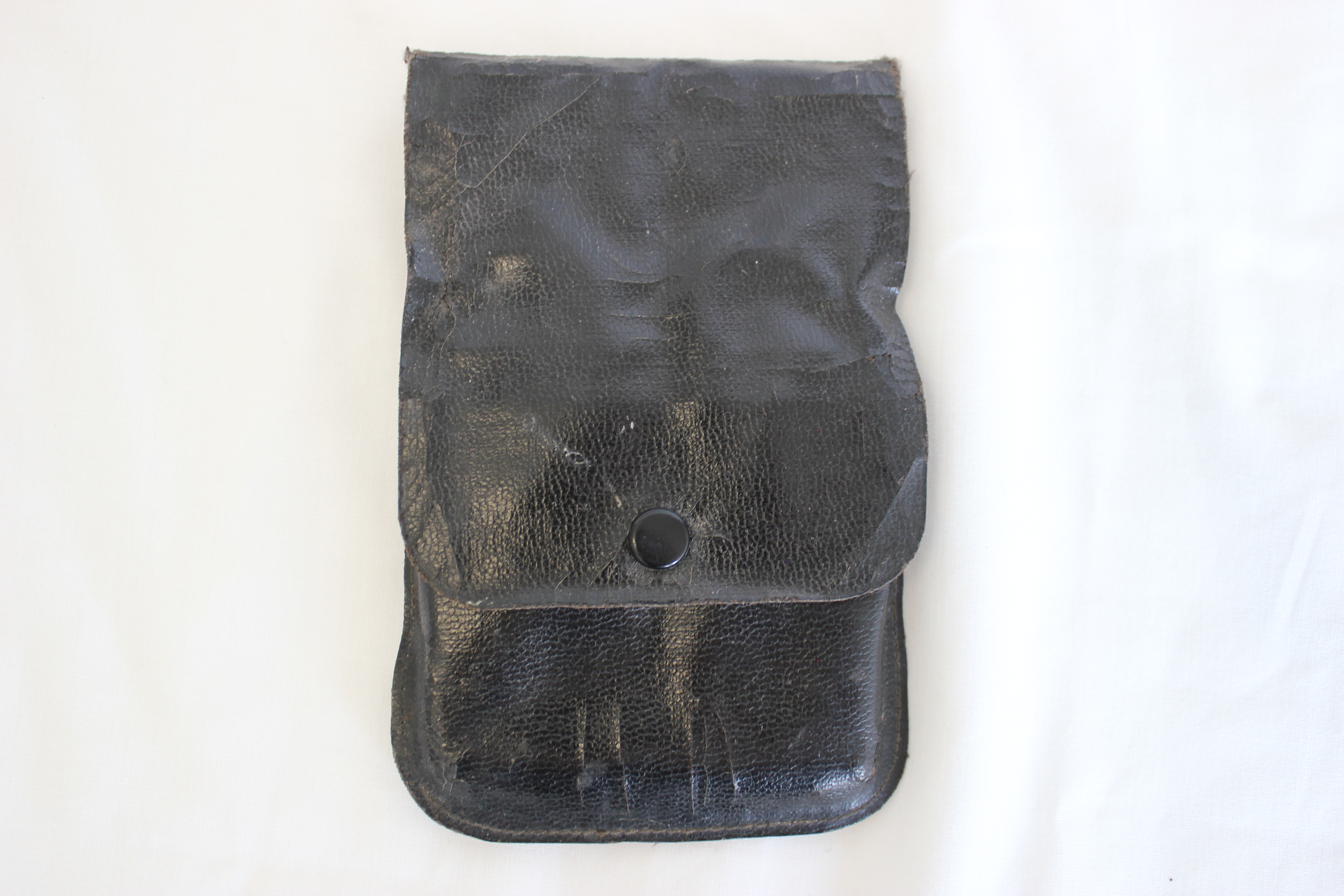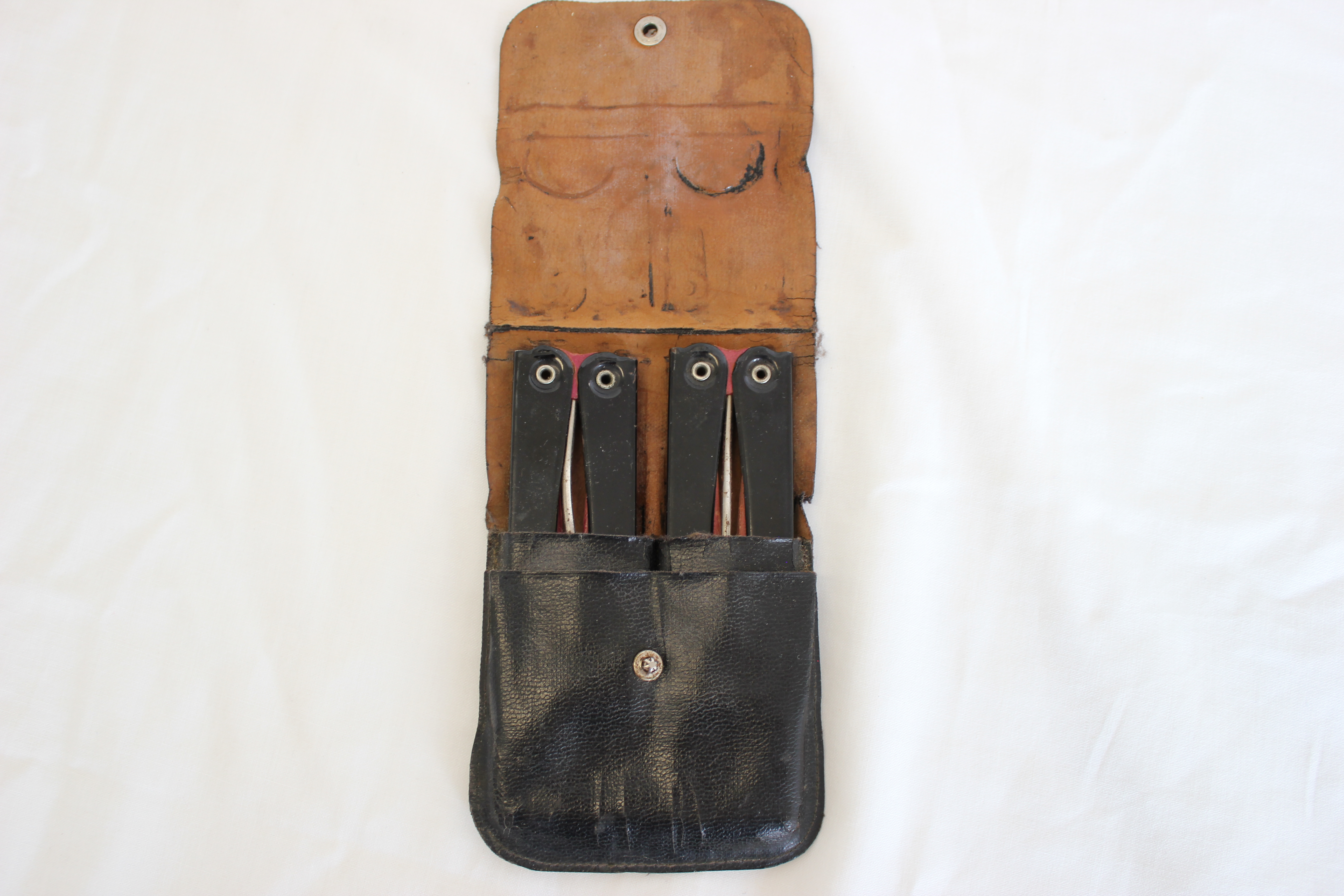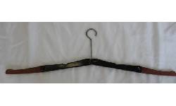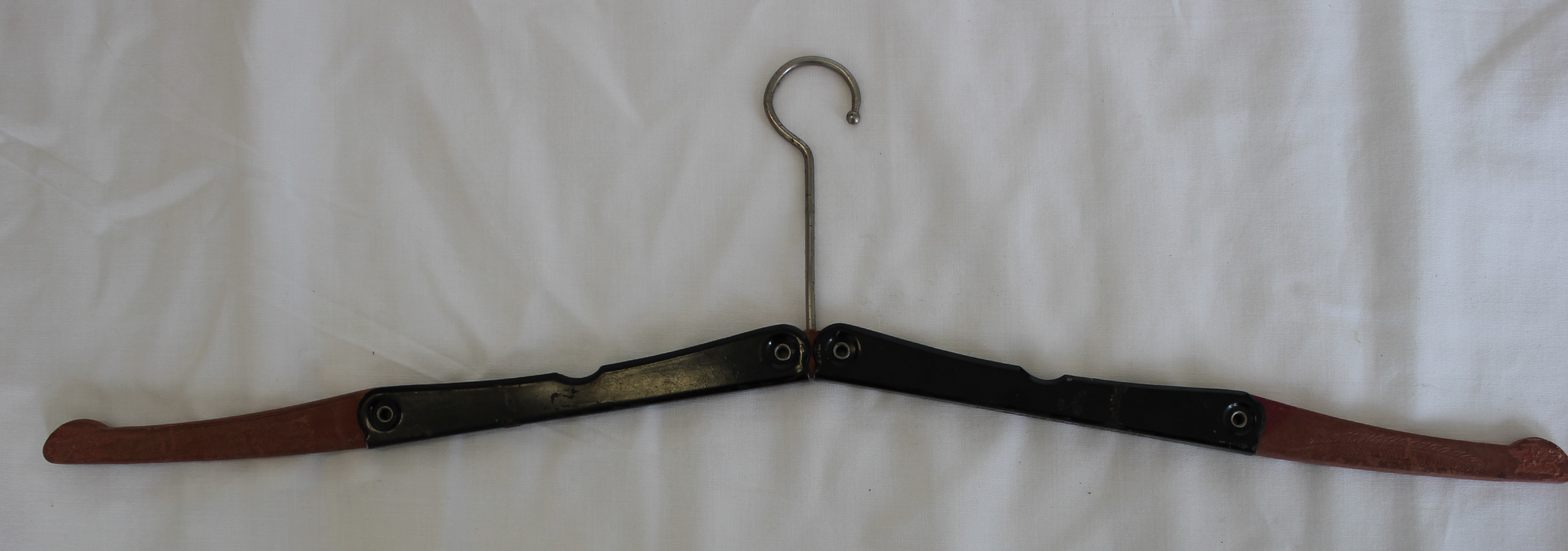 Object Desc Foldable Hangers in leather case for travelling, owned by Verna Gamey Donated by Irene Gamey