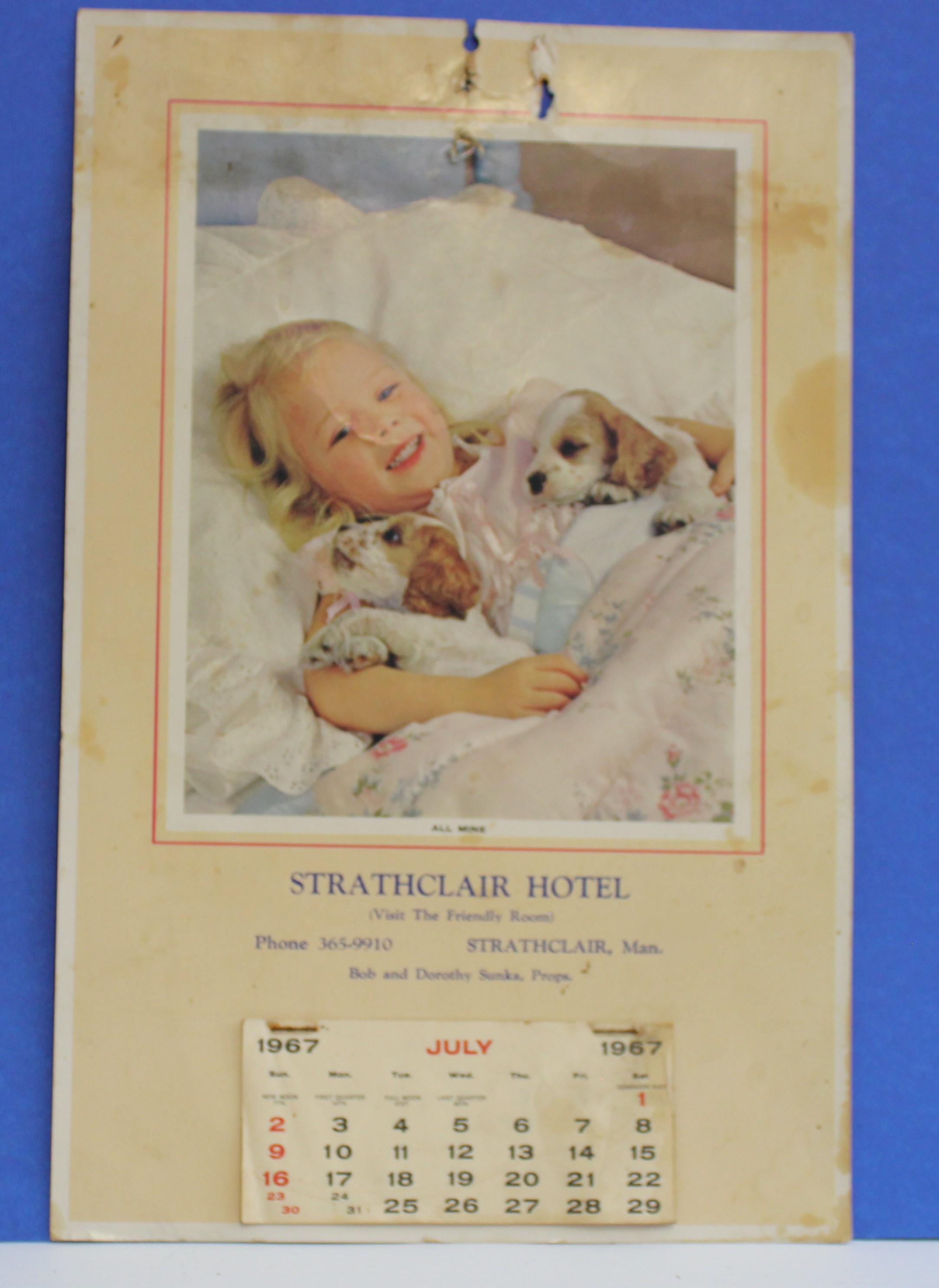 Object Desc Strathclair Hotel, Calender, July 1967 Donated by Willard Moffat
