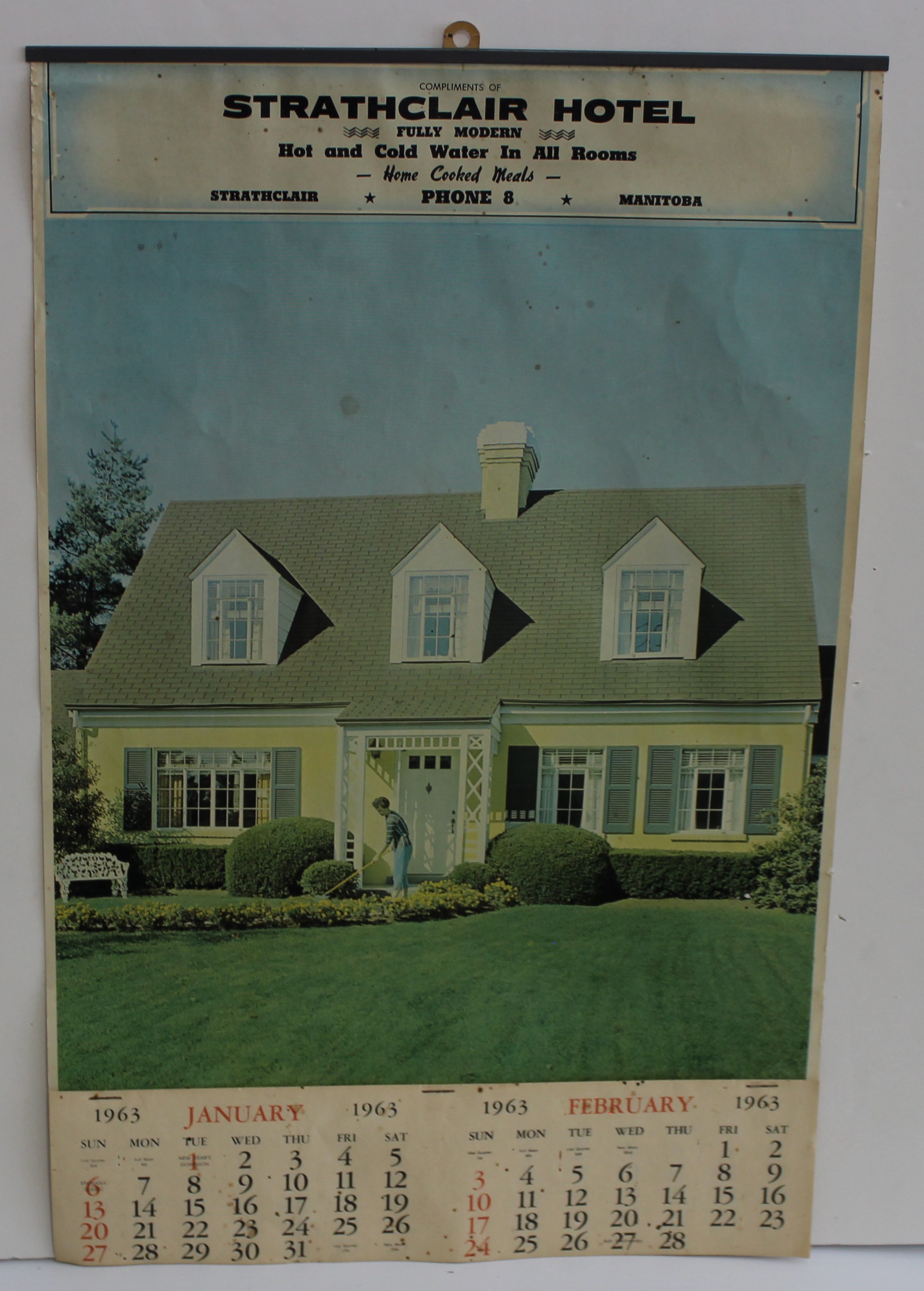 Object Desc Strathclair Hotel, Calender, January and Febuary, 1963, donated by Willard Moffat