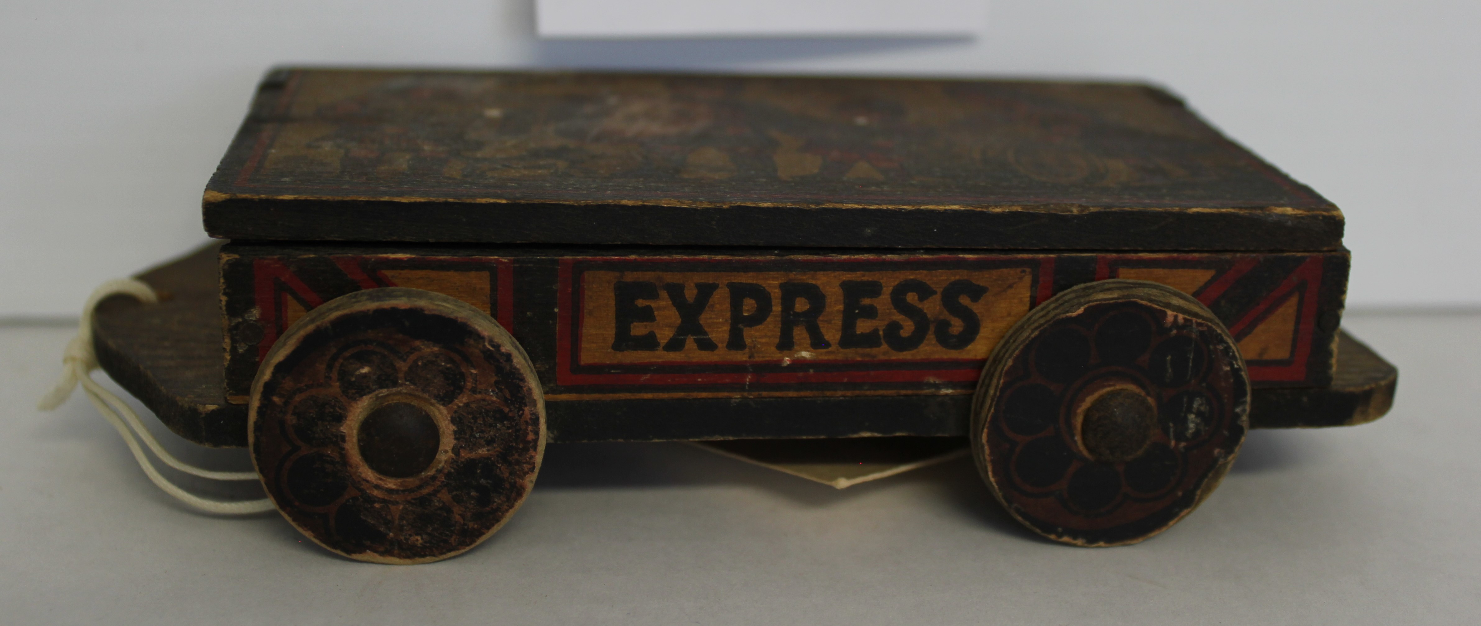 Object Desc The wooden pull toy belonged to Alston Moffat, who was born in 1904.