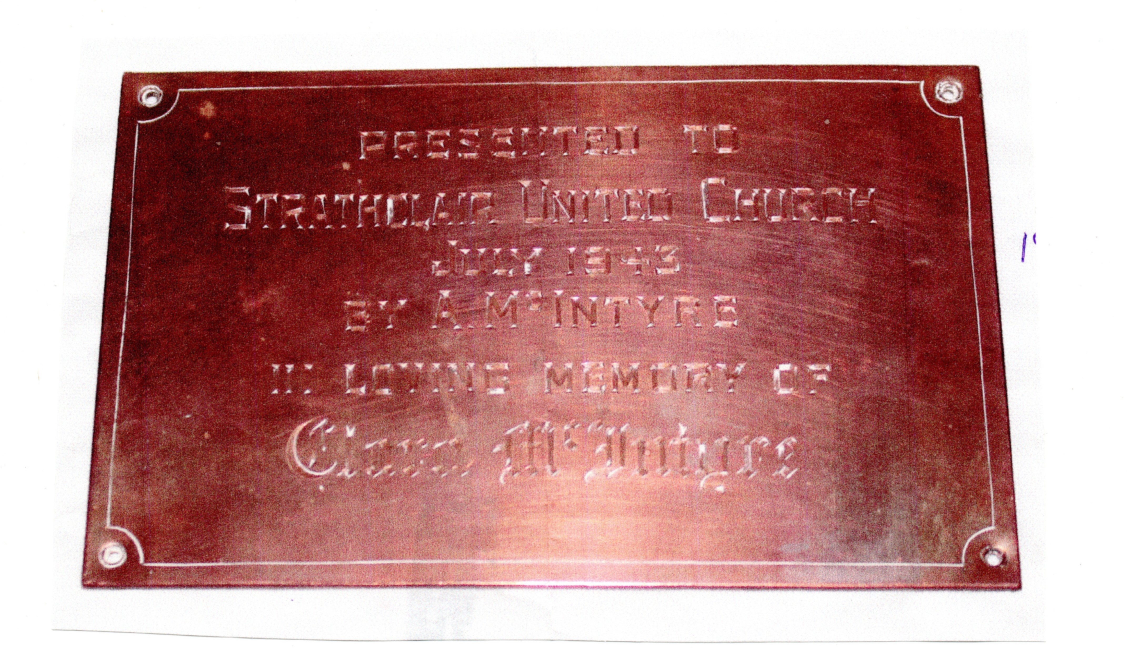 Notes Bought from Dennis Larson of Erickson in 2006, was told that it was originally from the Strathclair United Church. Dennis ran a "Flea Market" store.