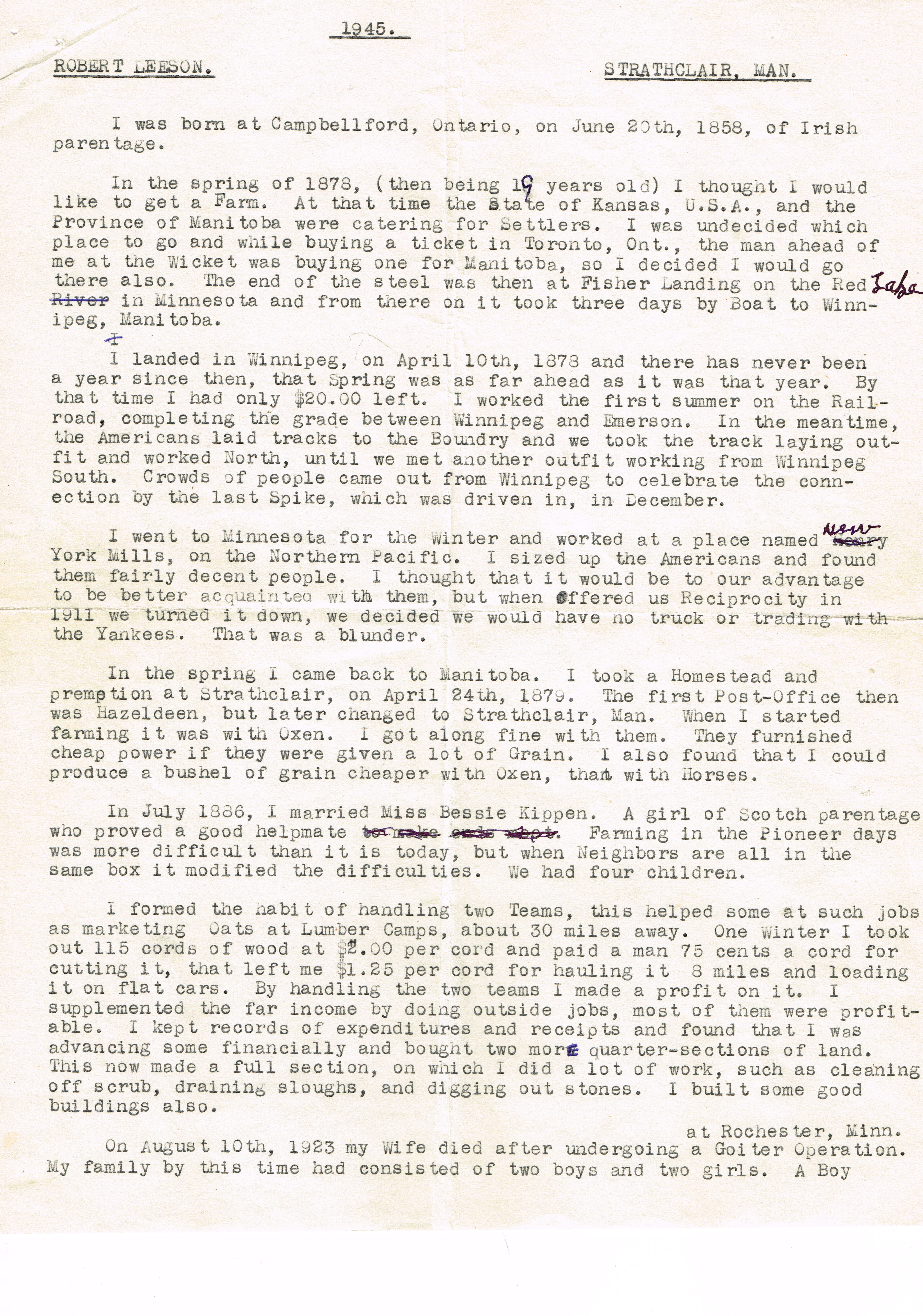 Object Desc Life story of Robert Leeson. Contributed by Wayne McCutcheon, great grandson of Robert Leeson.