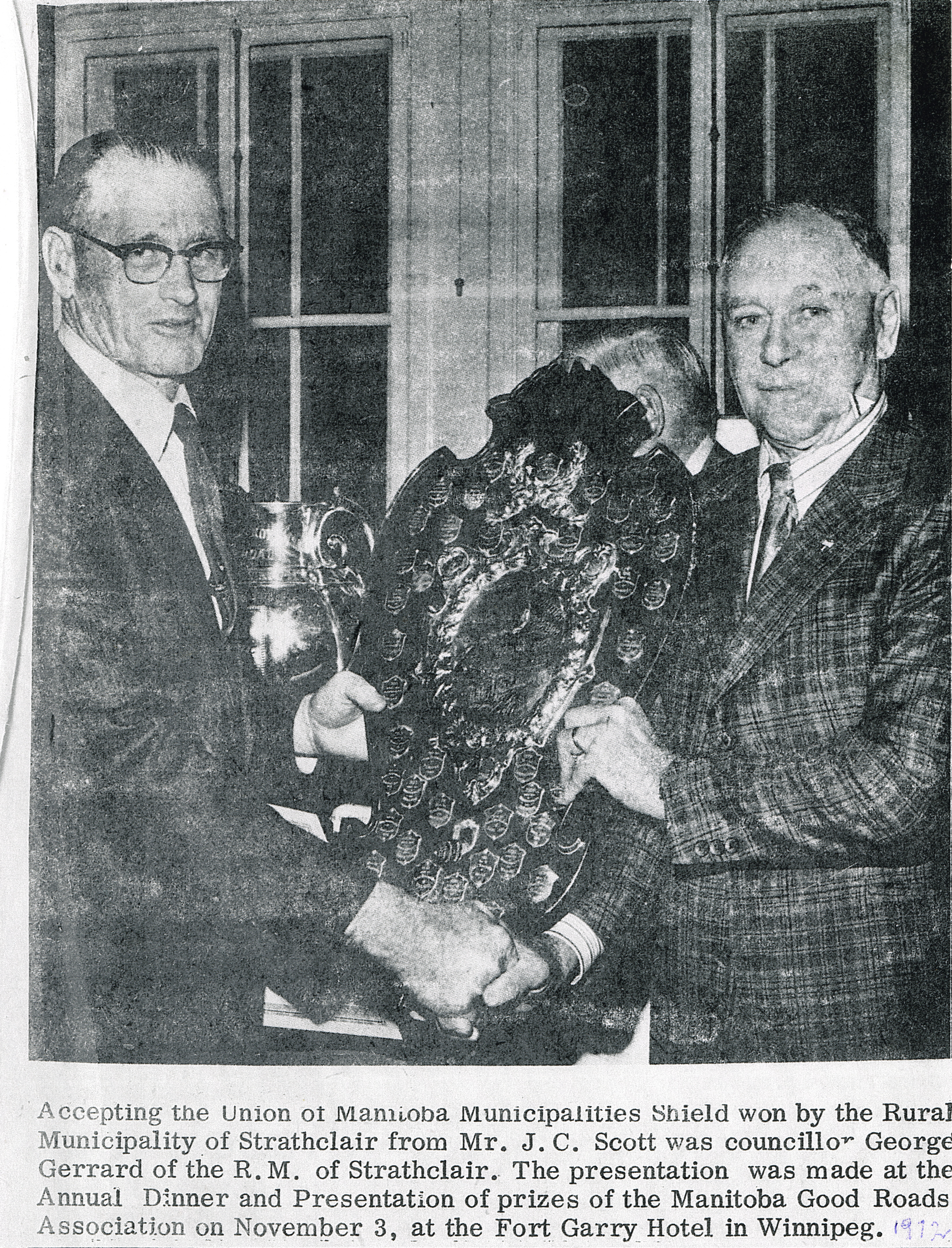 Object Desc accpetion the Union of Maintoba Municipalities Shield won by the Municipality of Strathclair from Mr. J.C. Scott was councillor George Gerrard of the R.M. of Strathclair. See notes for more.