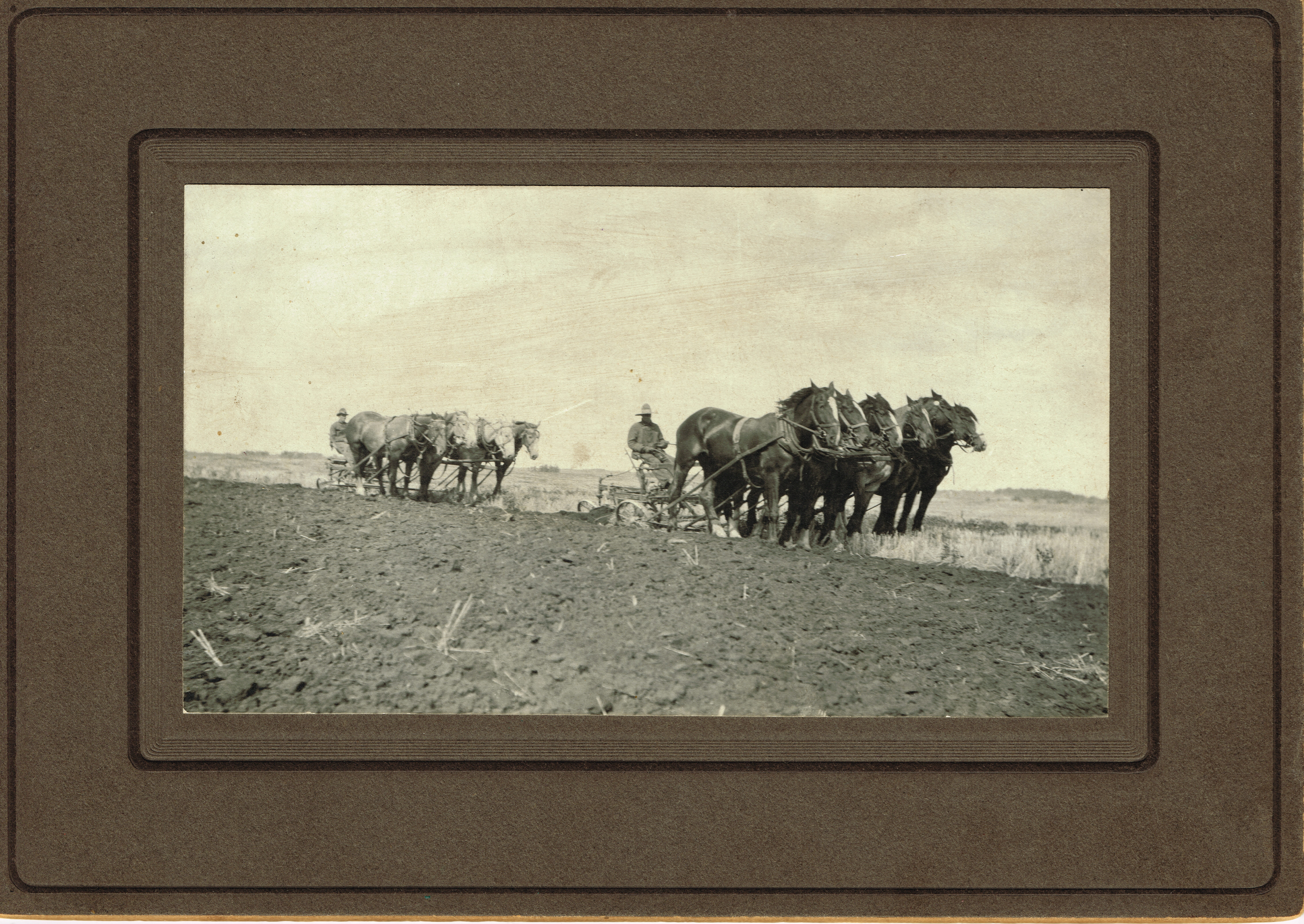 Description Plowing with 2 + 3 furrow gangs on John F. McTavish farm sec. 7-16-21