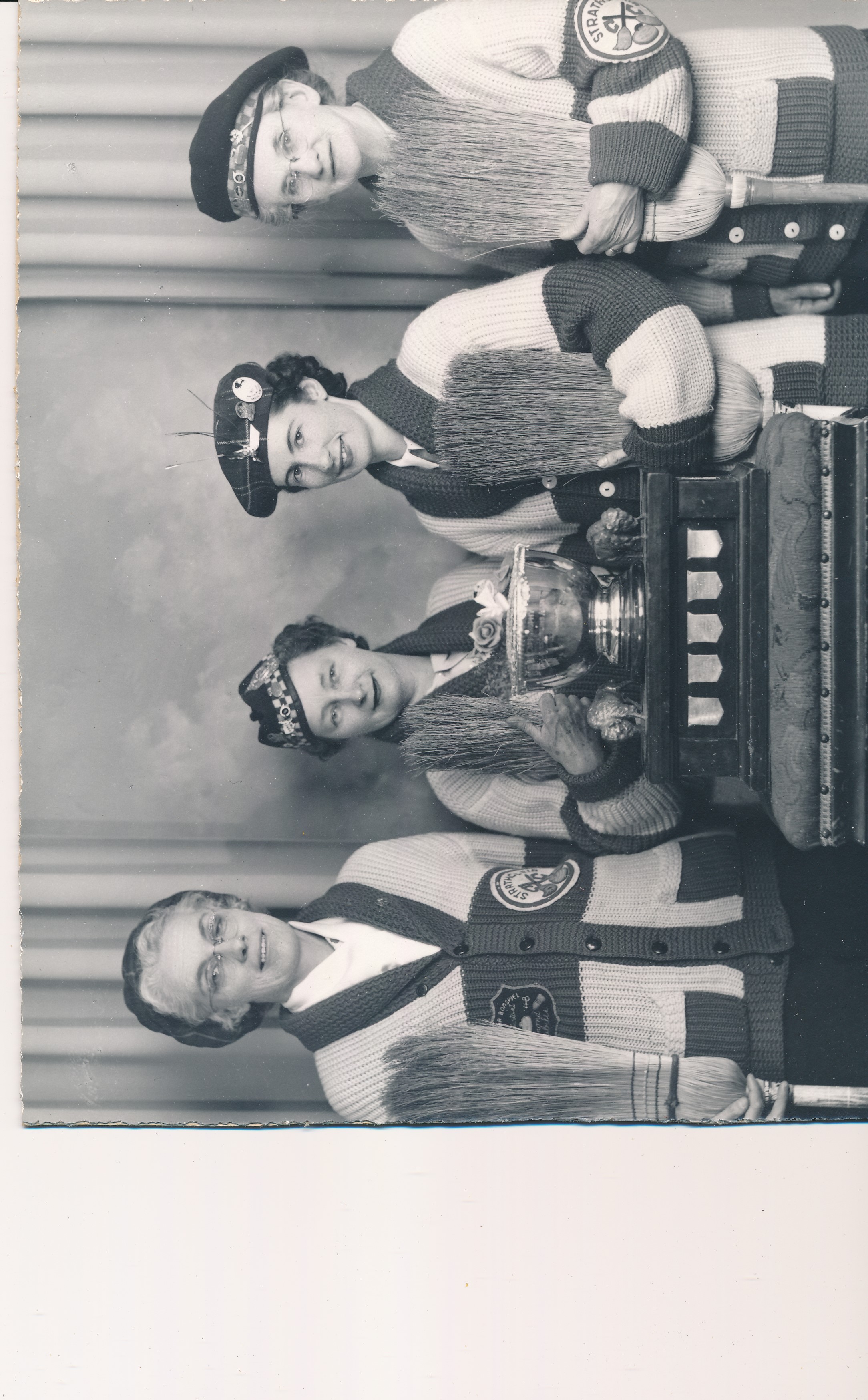 Object Desc Local Curlers receiving the Mitchell Copp Trophy. L-R: Mary Bridges, Agnes Mackie, Doris Cochrane, M. Calder