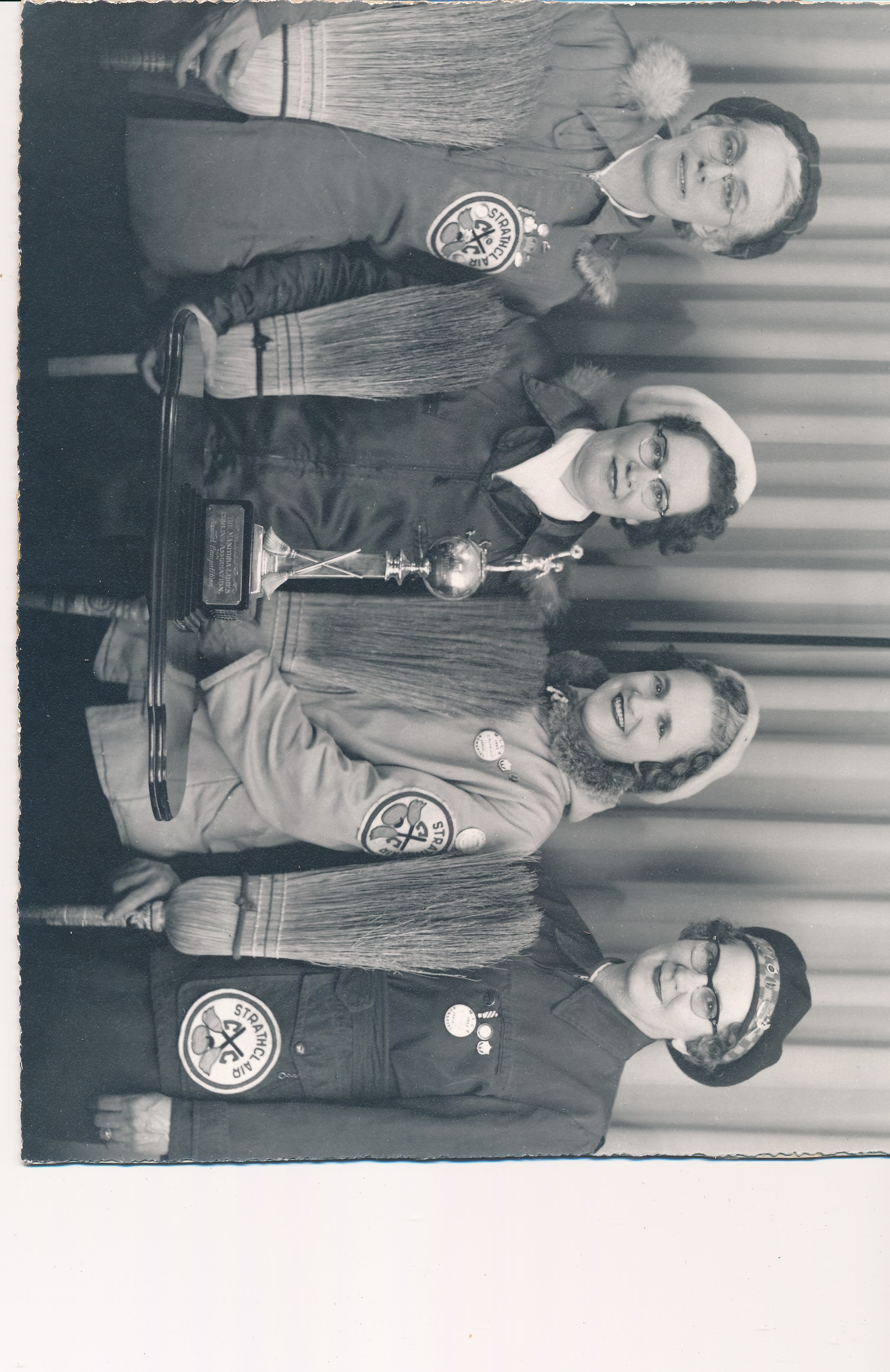 Object Desc Local curlers receiving the Grain Exchange Trophy. L-R: M. Bridges, K. Lipinski, S. Morrison, H. Sivers