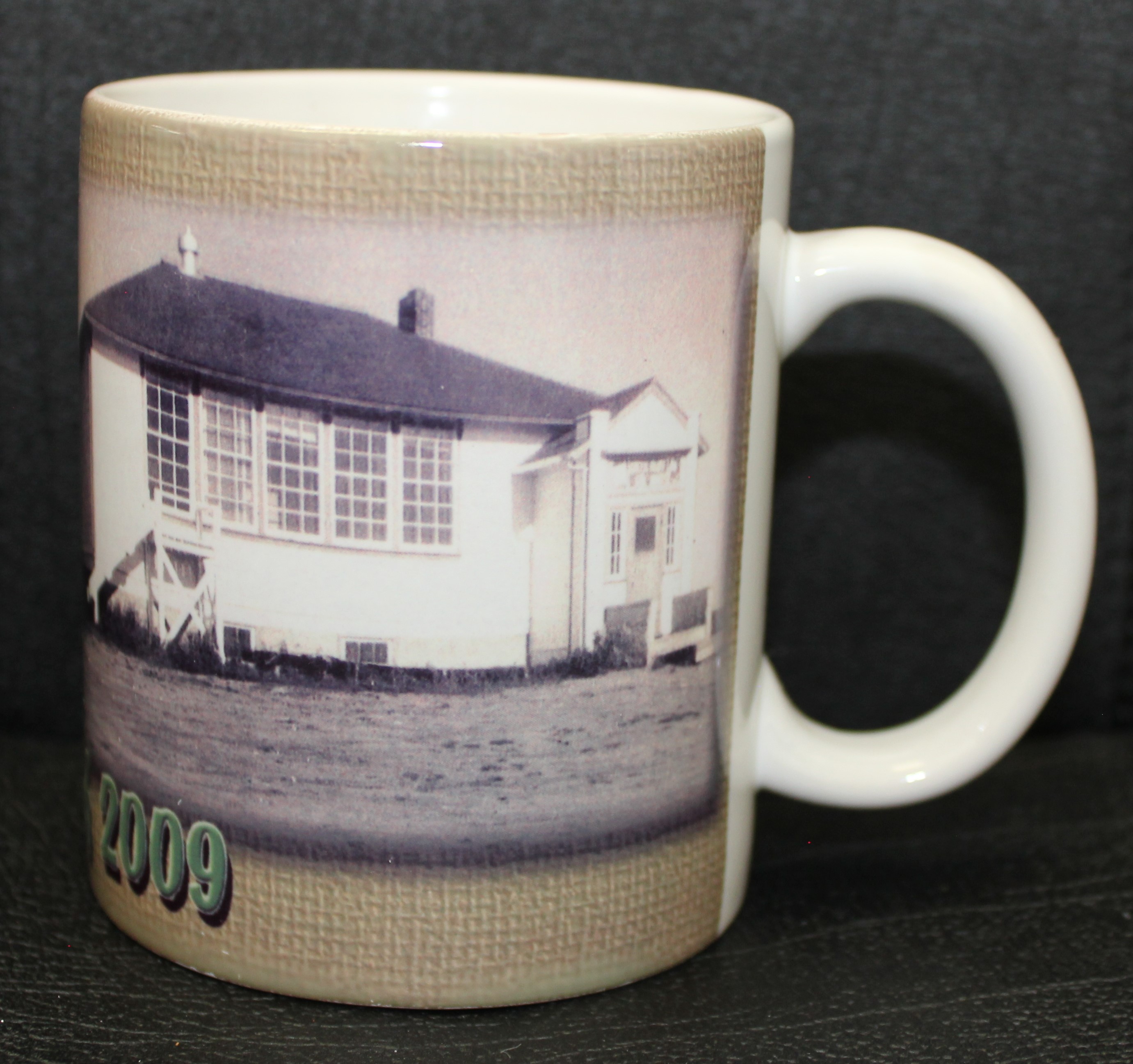 Object Desc Coffee Mug with picture of Green Bluff School on it.