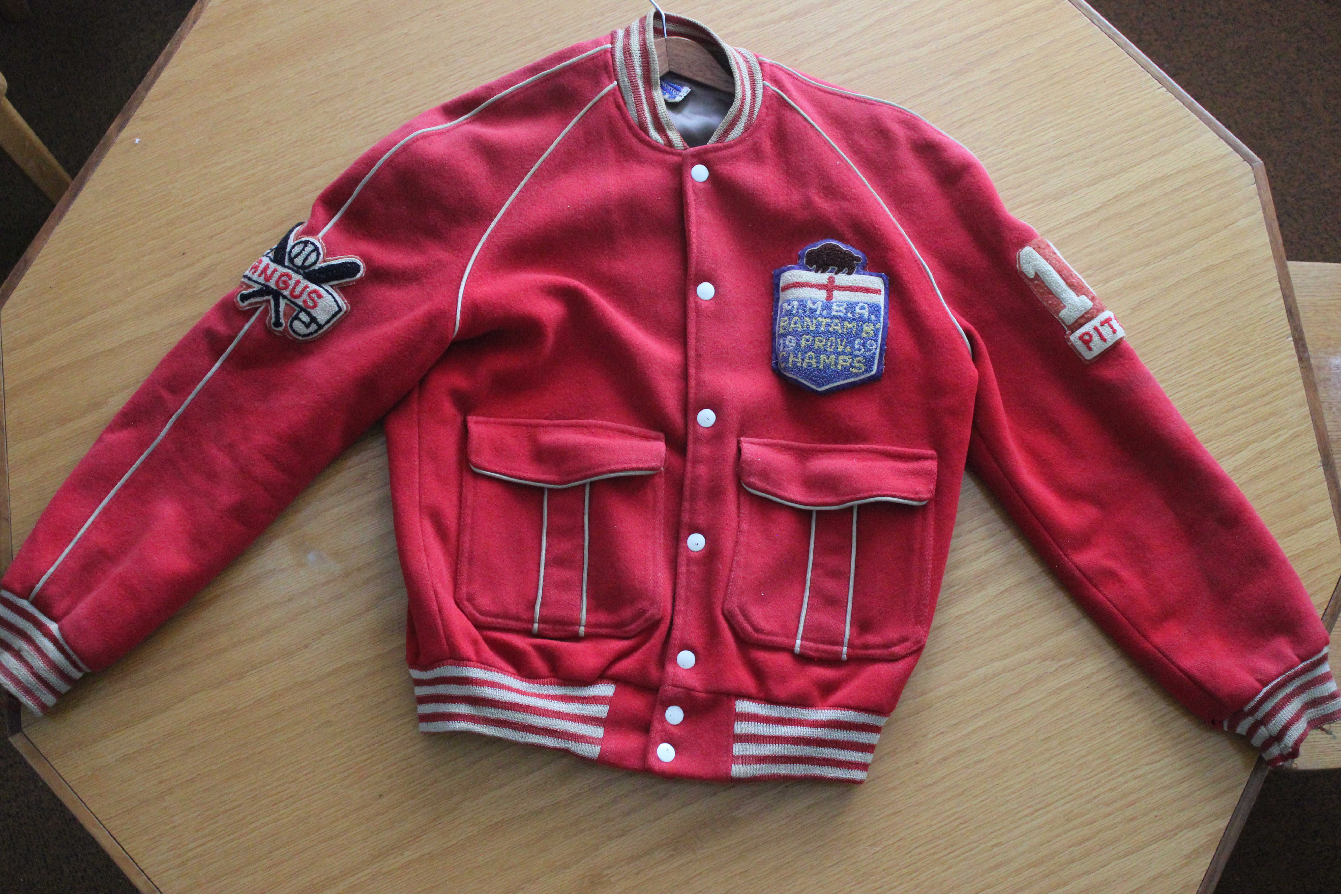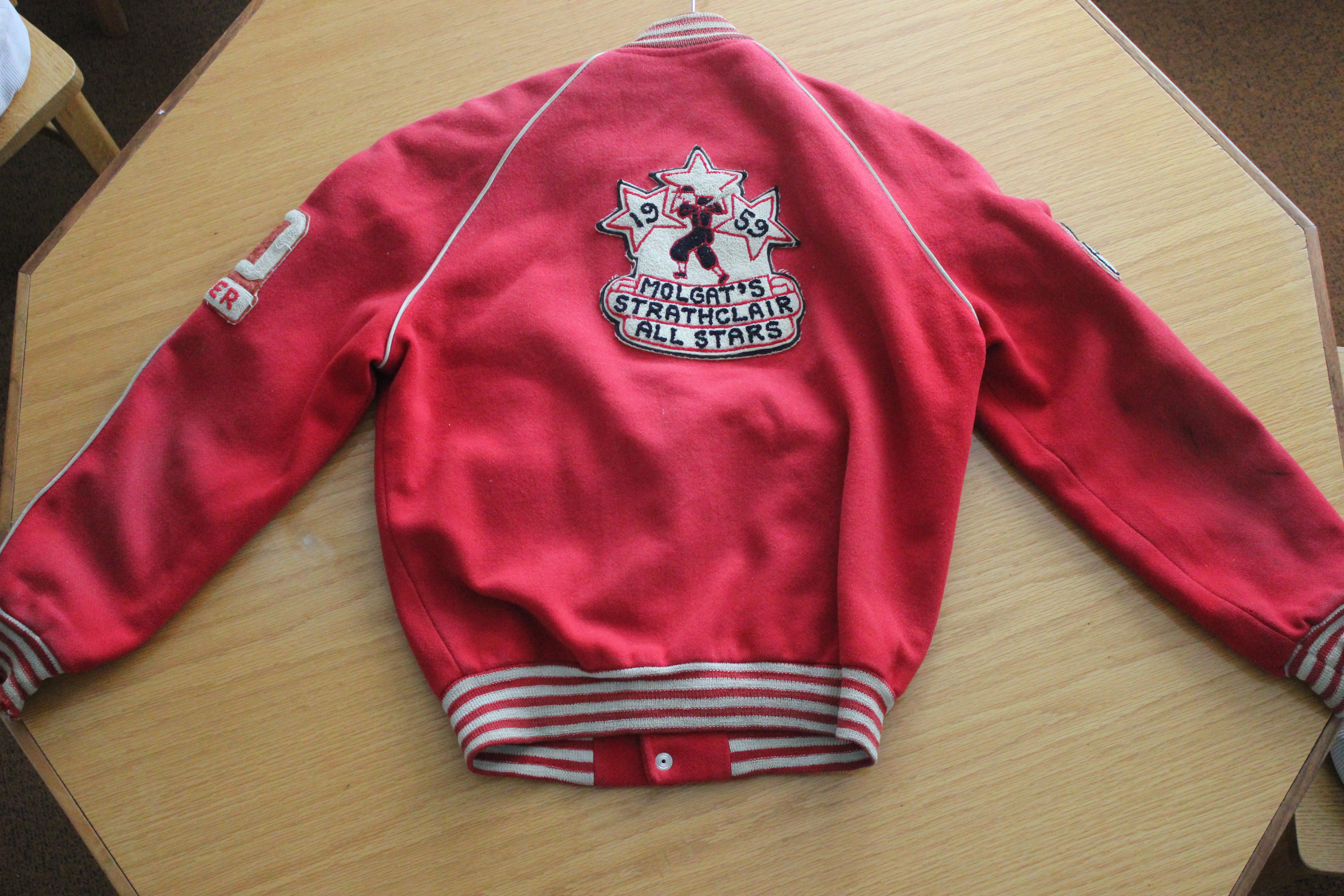 Object Desc M.M.B.A Bantam B Provincial champs 1959, Molgat's Strathclair All-Stars. Number 10, Pitcher, Refer to 2015.1266 for team photo.