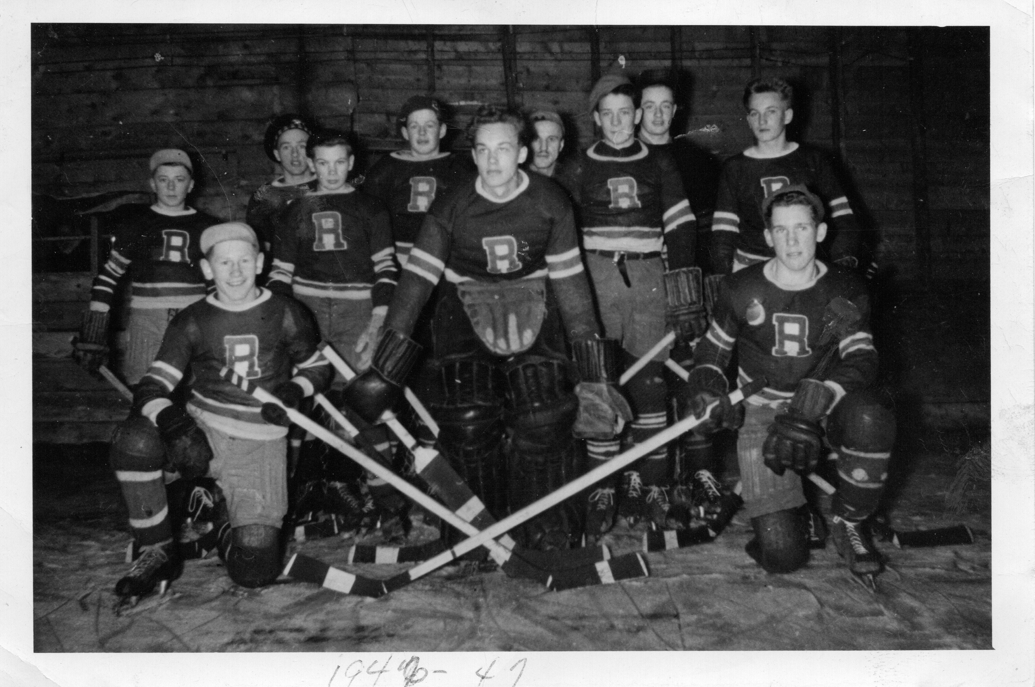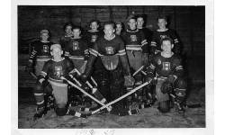 Object Desc Strathclair Blues Hockey Team Back row L-R: Harry Kulchyski, Earl Millman, James Taylor, Bill Watson, Mr Blackhurst, Edwin Watson, James Burnell, Robert Cochrane Front Row L-R: Alex Kulchycki, Tom Sywak, Edward Taylor